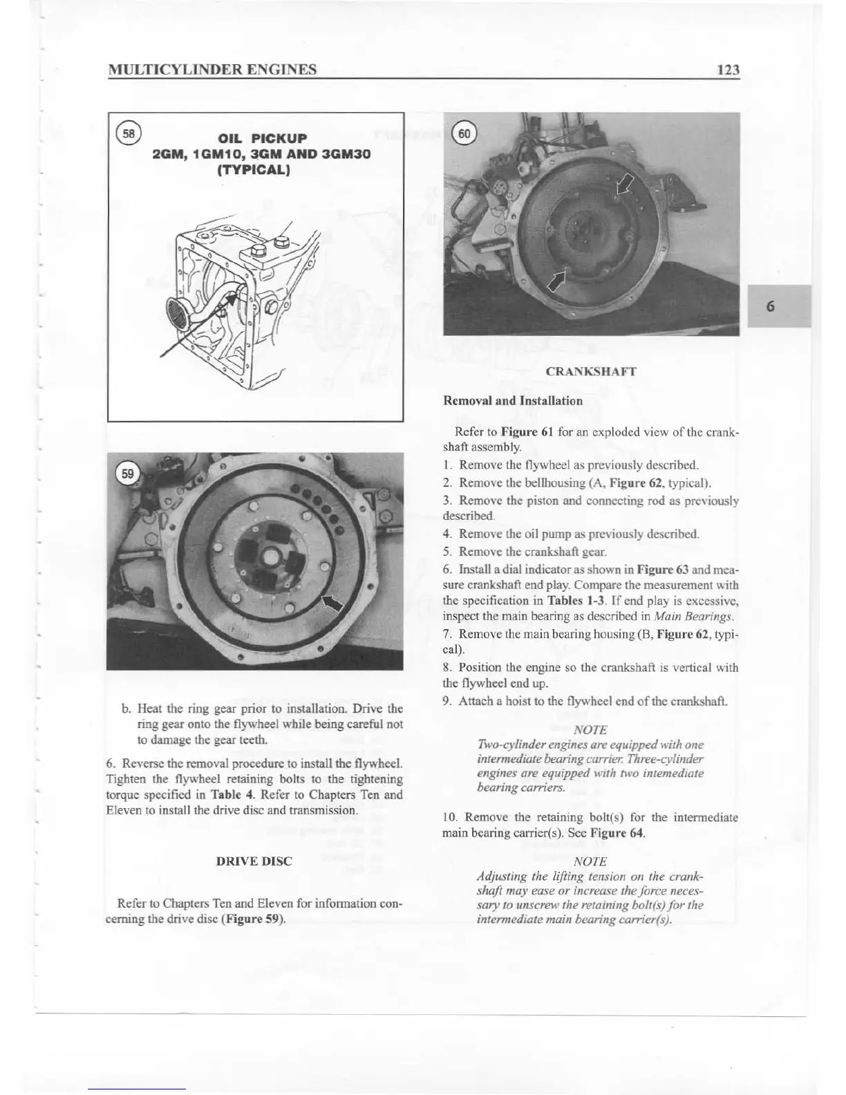 7. Remove the main bearing housing (B, Figure 62, typi-