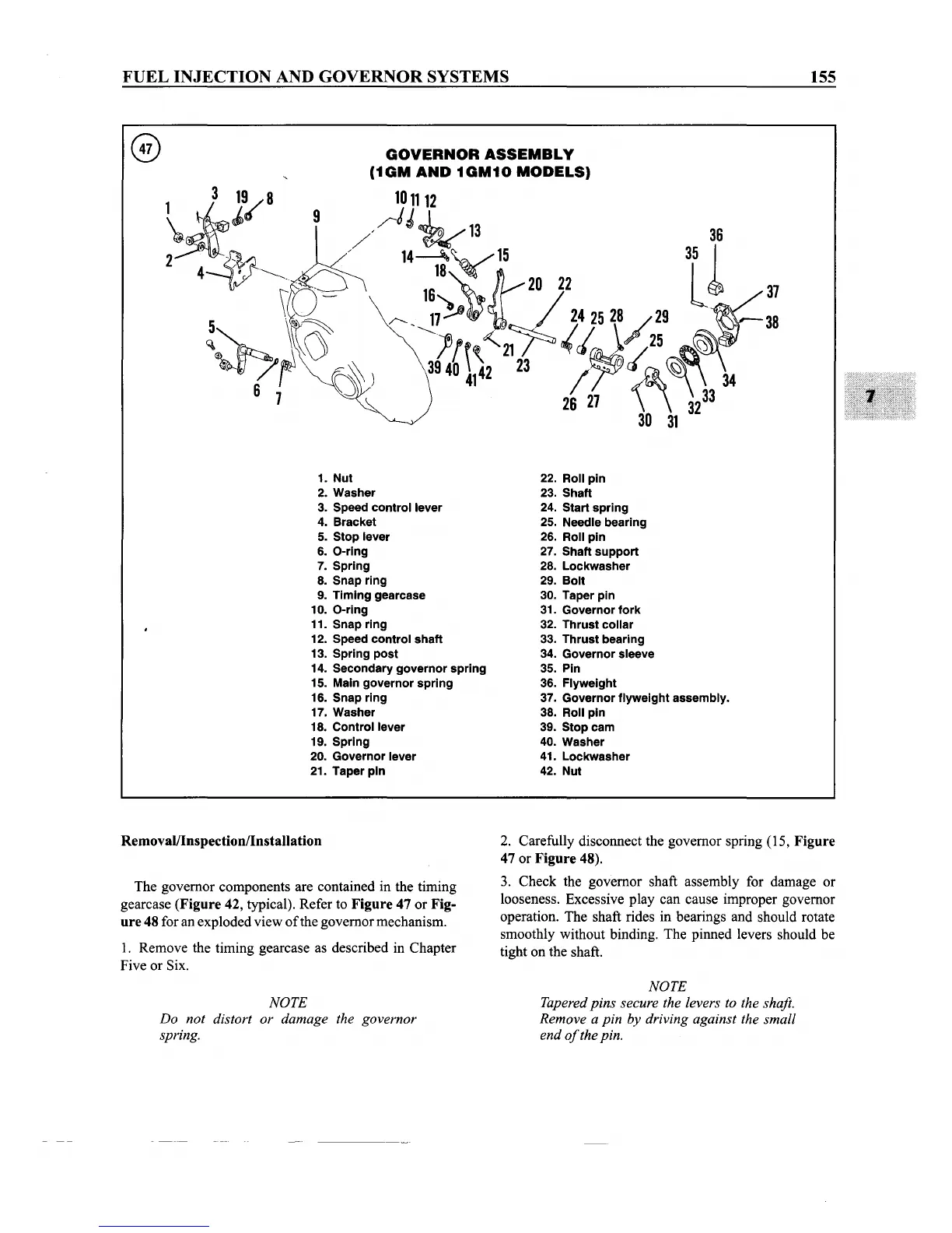 Yanmar 3GM30F - Governor Assembly Removal;Inspection;Installation