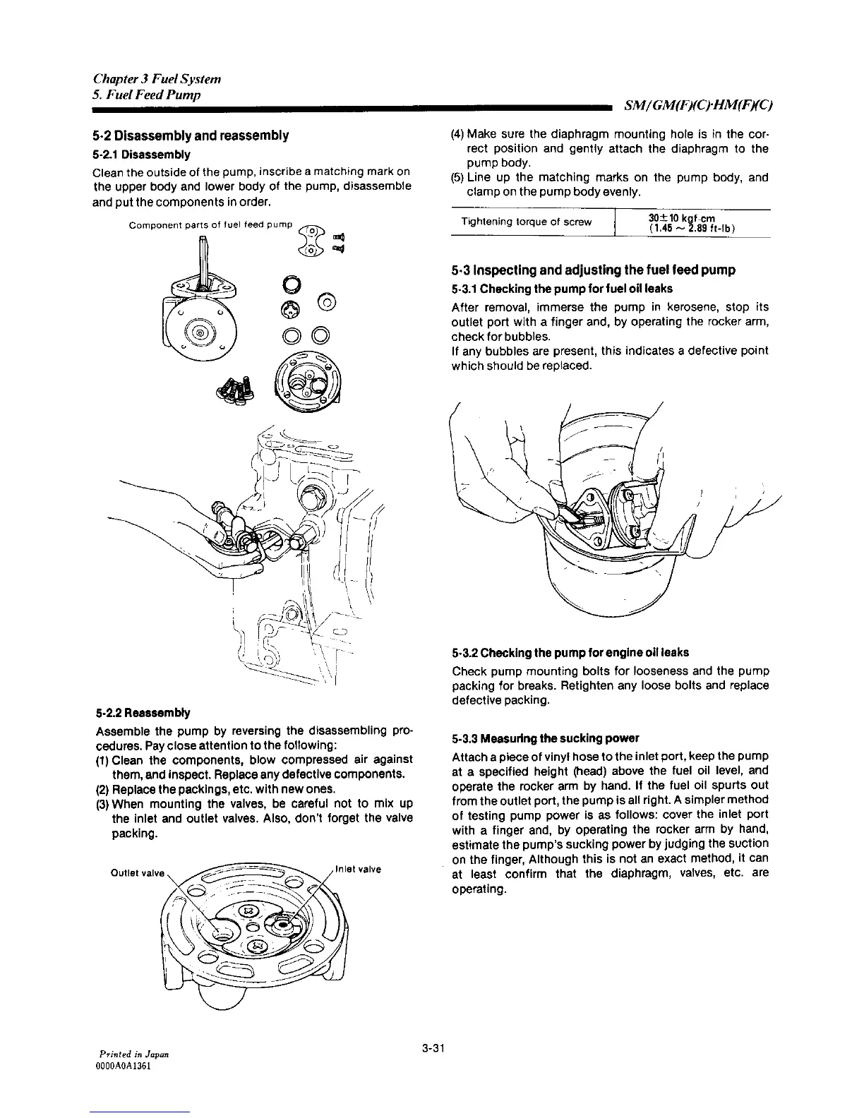 Yanmar 3HM35 - Fuel Feed Pump Disassembly and Reassembly; Inspecting and Adjusting the Fuel Feed Pump; Checking the Pump for Fuel Oil Leaks; Checking the Pump for Engine Oil Leaks
