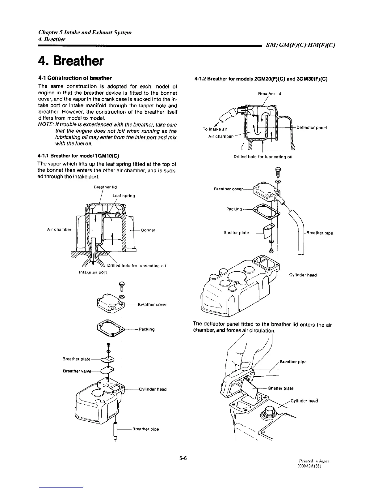 Yanmar 3HM35C - Construction of Breather; Breather for Model 1 GM10(C); Breather for Models 2 GM20(F)(C) and 3 GM30(F)(C)