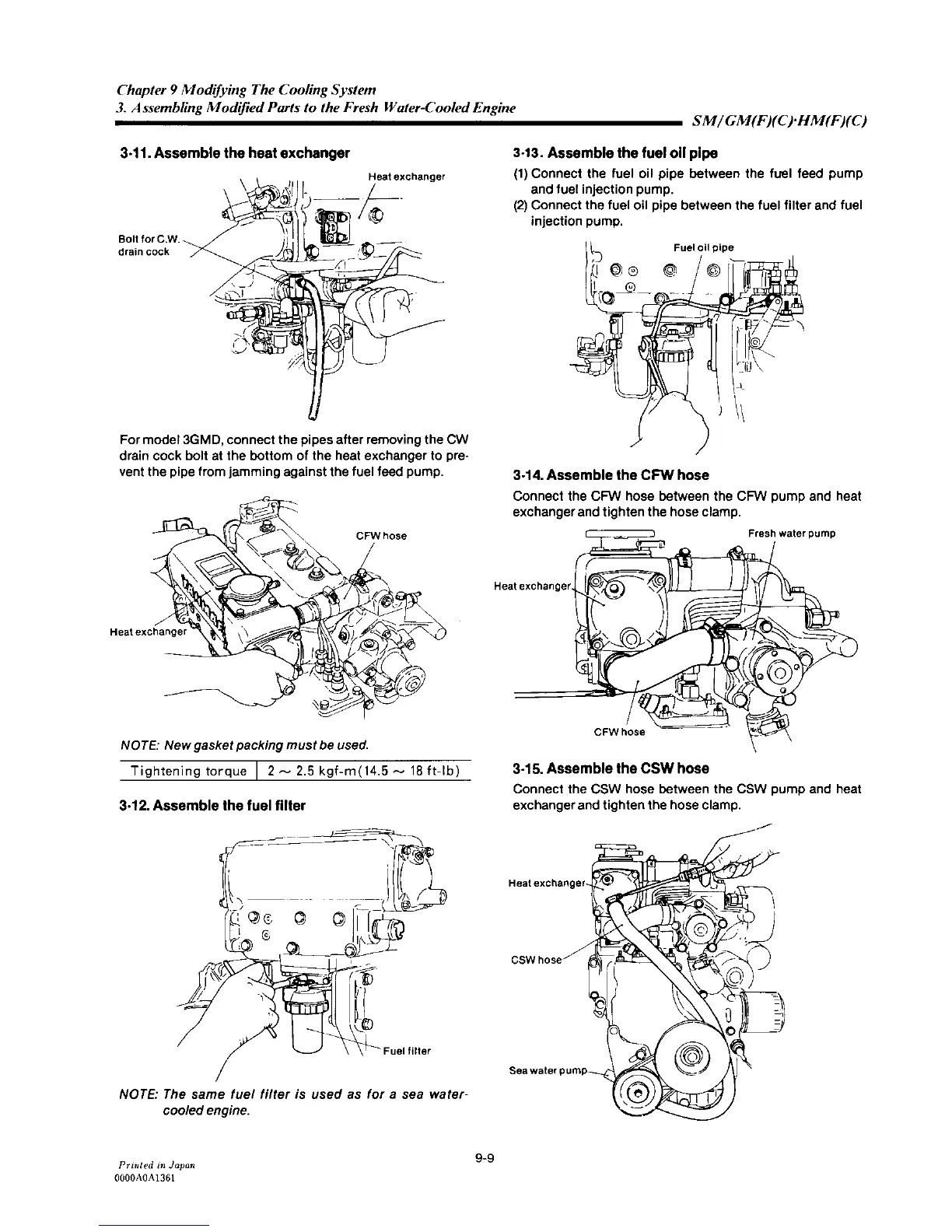 Yanmar 3HM35C - Assemble the Heat Exchanger; Assemble the Fuel Filter; Assemble the Fuel Oil Pipe
