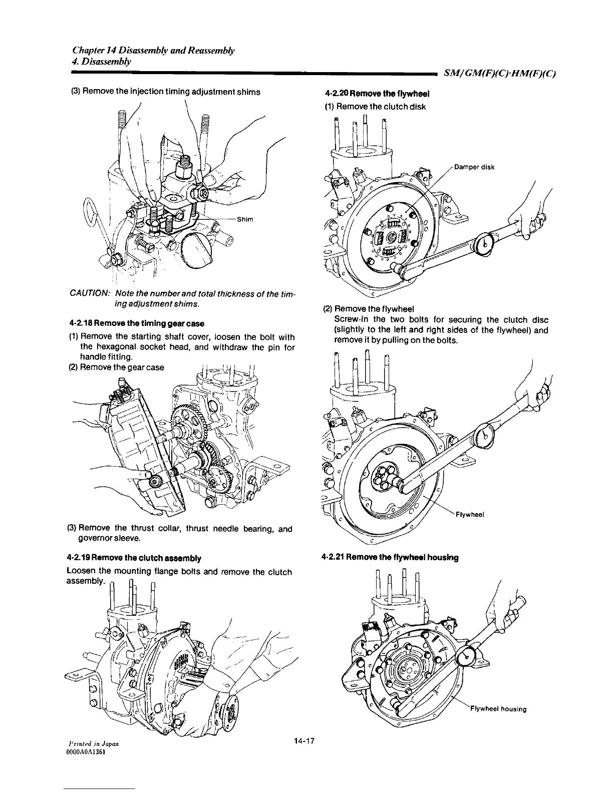 Yanmar 3HM35C - Remove the Timing Gear Case; Remove the Clutch Assembly; Remove the Flywheel; Remove the Flywheel Housing