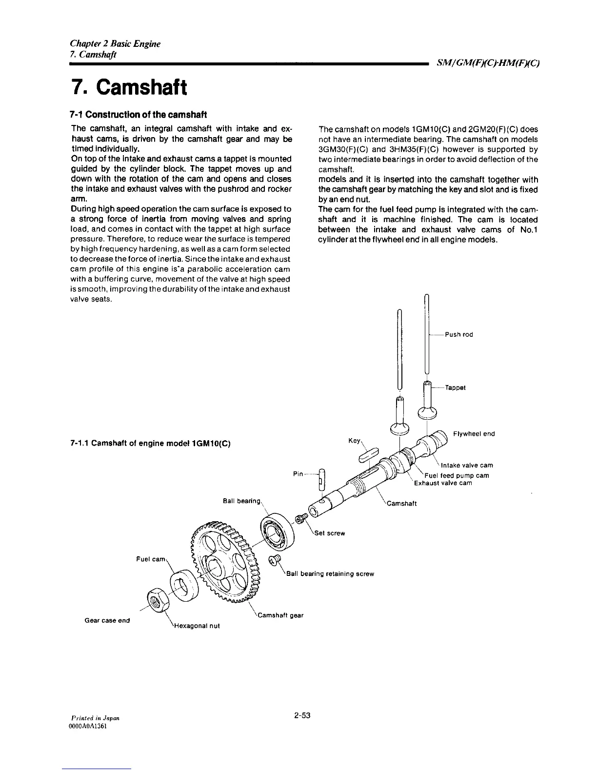 Yanmar 3HM35F - Camshaft Construction and Inspection