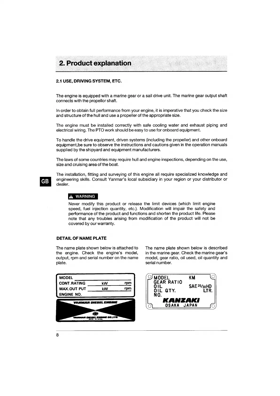 The engine is equipped with a marine gear or a sail drive unit. The marine gear output shaft