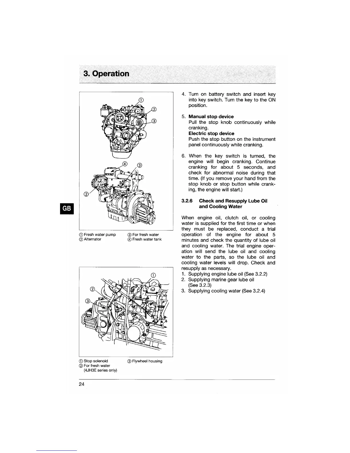 Yanmar 3JH3BE - 3.2.6 Check and Resupply Lube Oil and Cooling Water
