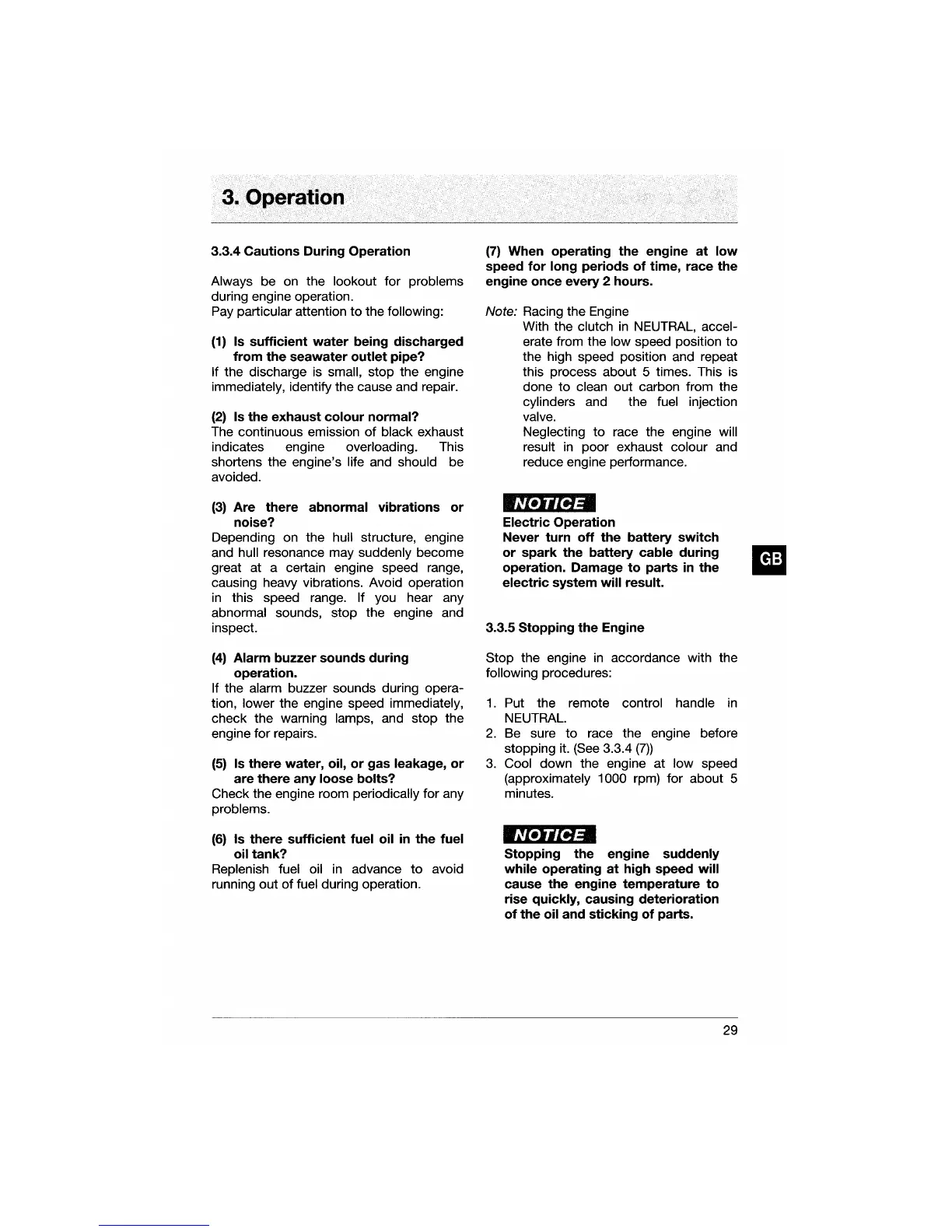 Yanmar 3JH3BE - 3.3.4 Cautions During Operation; 3.3.5 Stopping the Engine