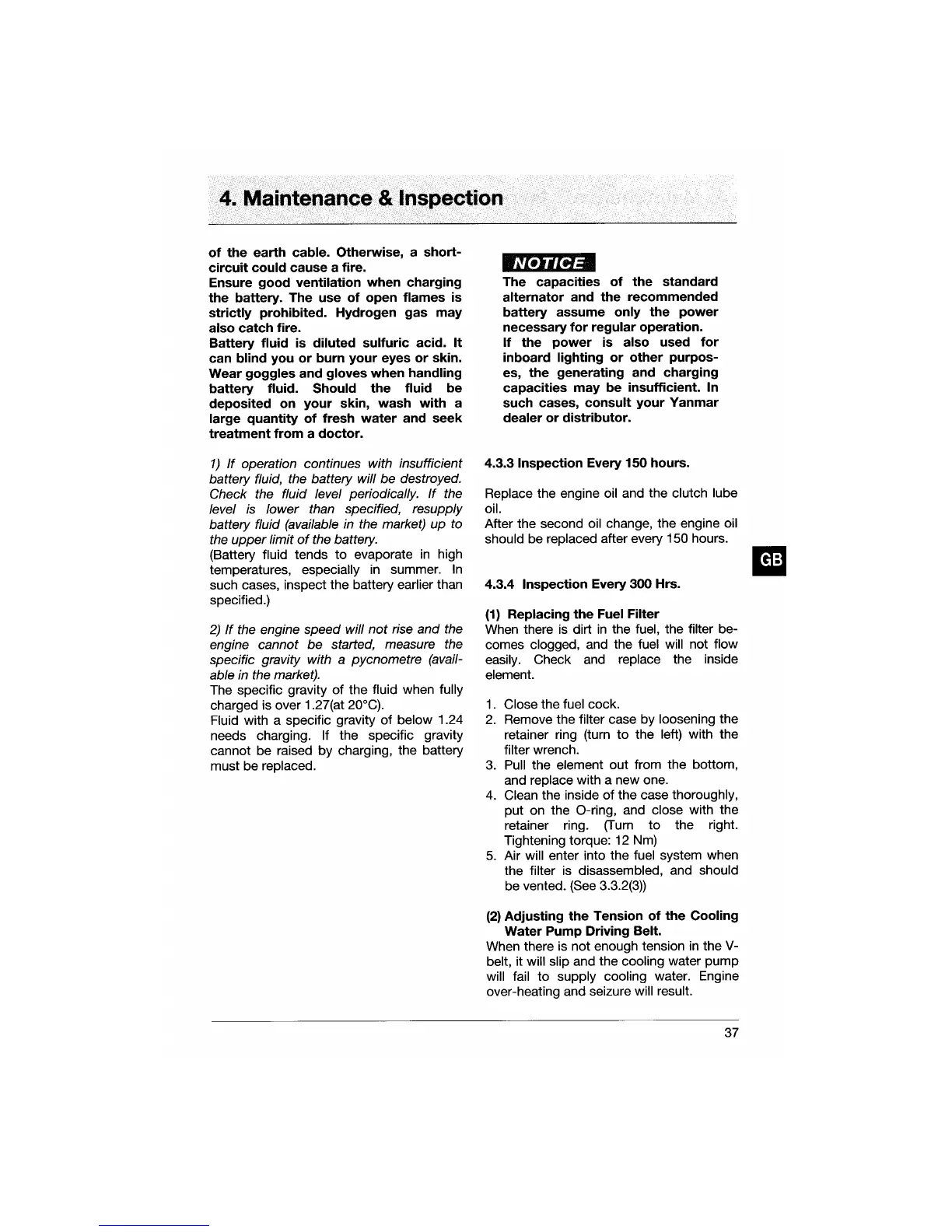Yanmar 3JH3CE - Inspection Every 150 Hours;Every 300 Hours