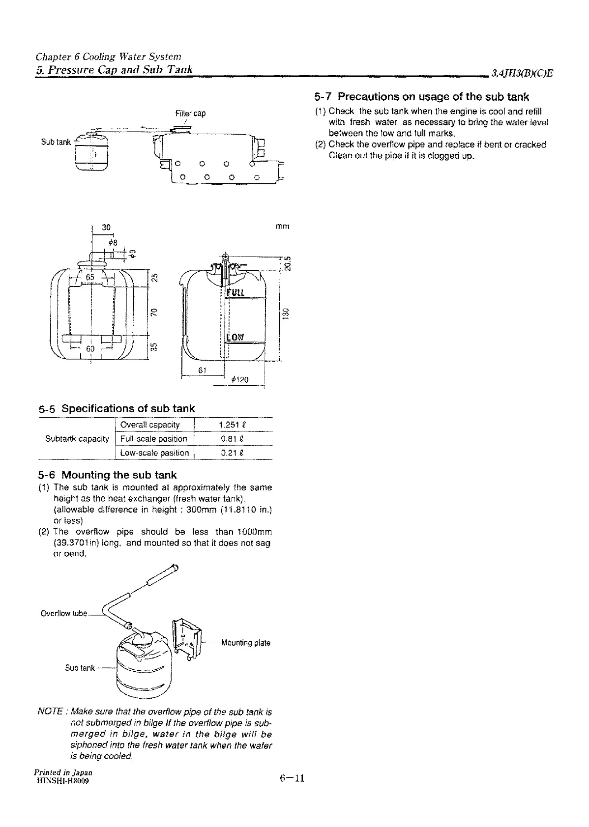 Specifications of sub tank
