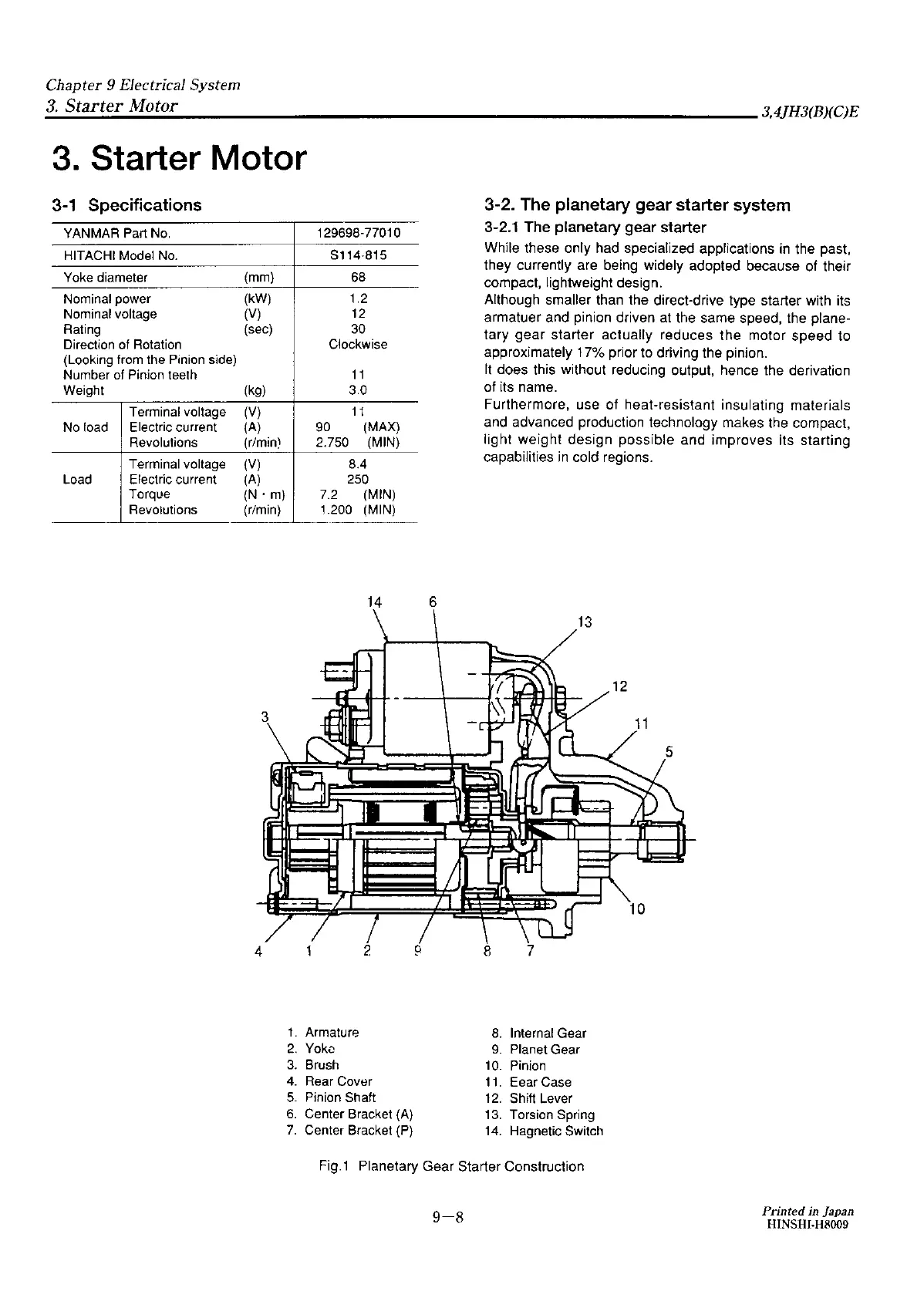 3-2. The planetary gear starter system