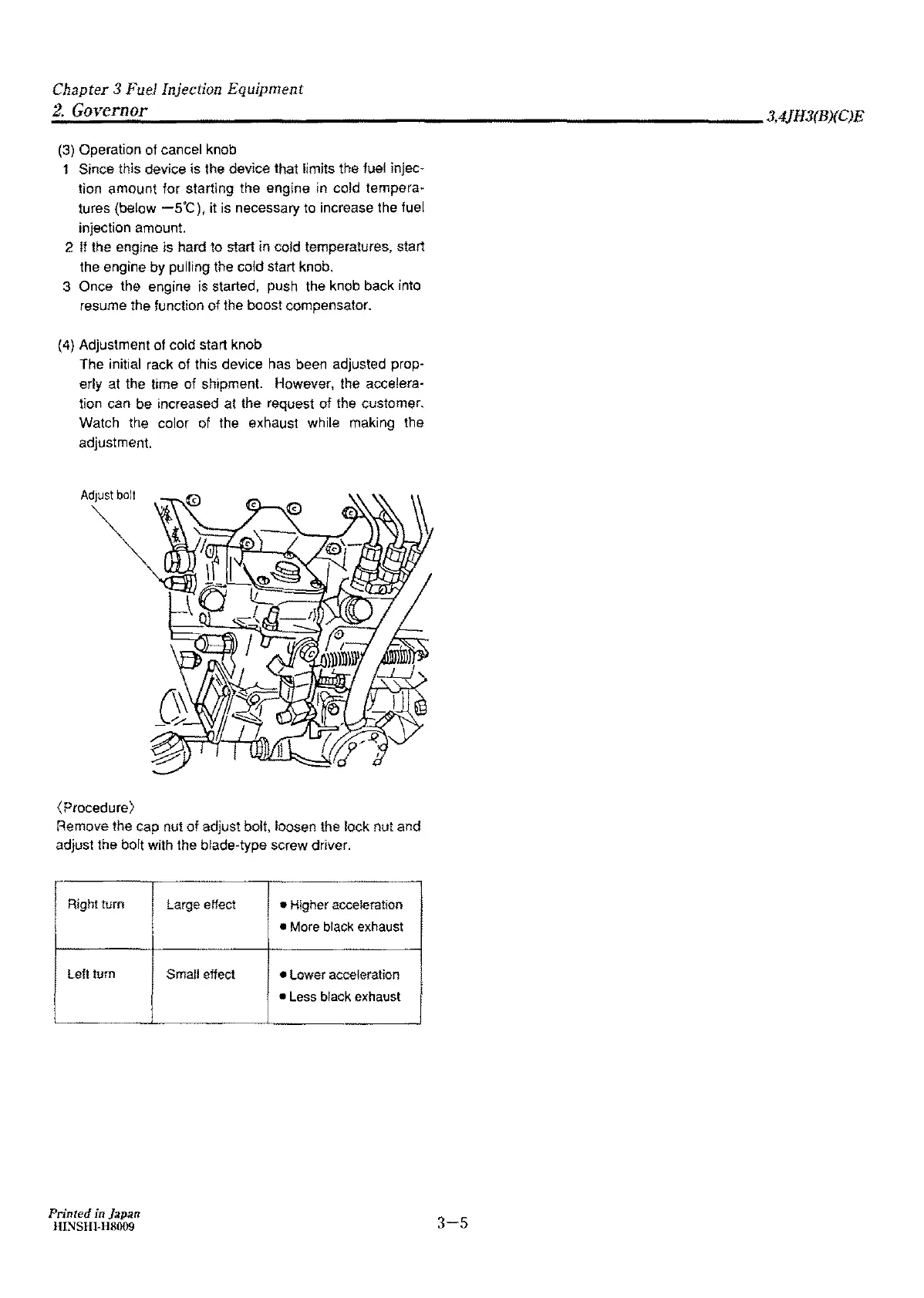 (4) Adjustment of cold start knob
