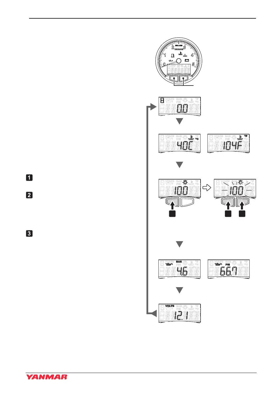 LCD control (hourmeter, coolant temperature, display brightness, oil pressure, battery voltage)