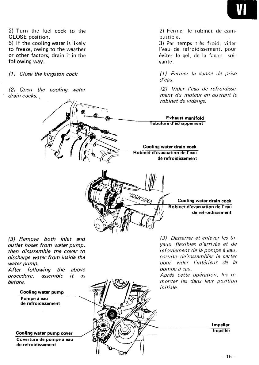 Yanmar 3QM30F - Exhaust Manifold Diagram; Cooling Water Dracin Cock Diagram; Cooling Water Pump and Impeller Diagram