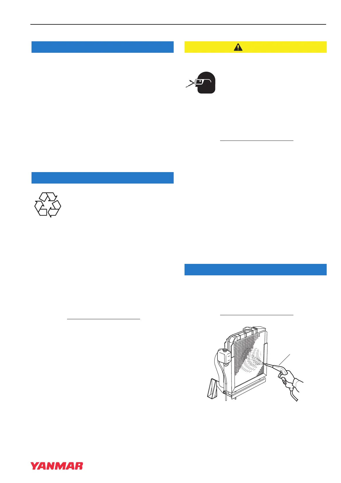 • Blow off dirt and dust from fins and radiator with