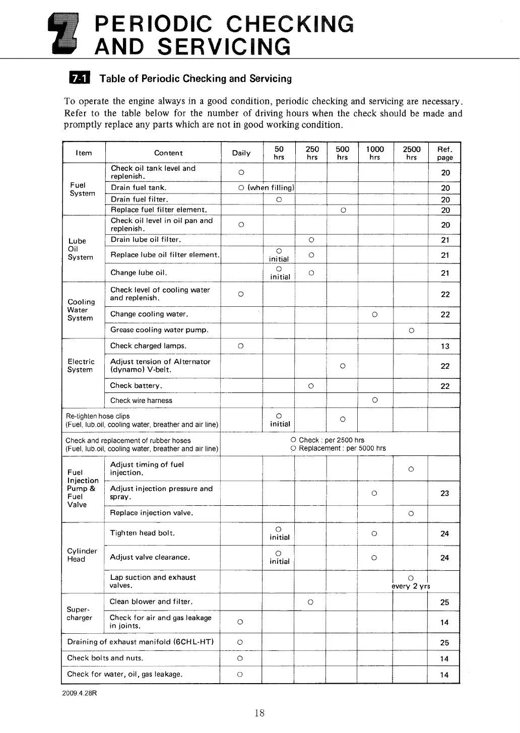 Yanmar 4CHL-N - 7. PERIODIC CHECKING AND SERVICING; 7-1. Table of Periodic Cheking and Servicing