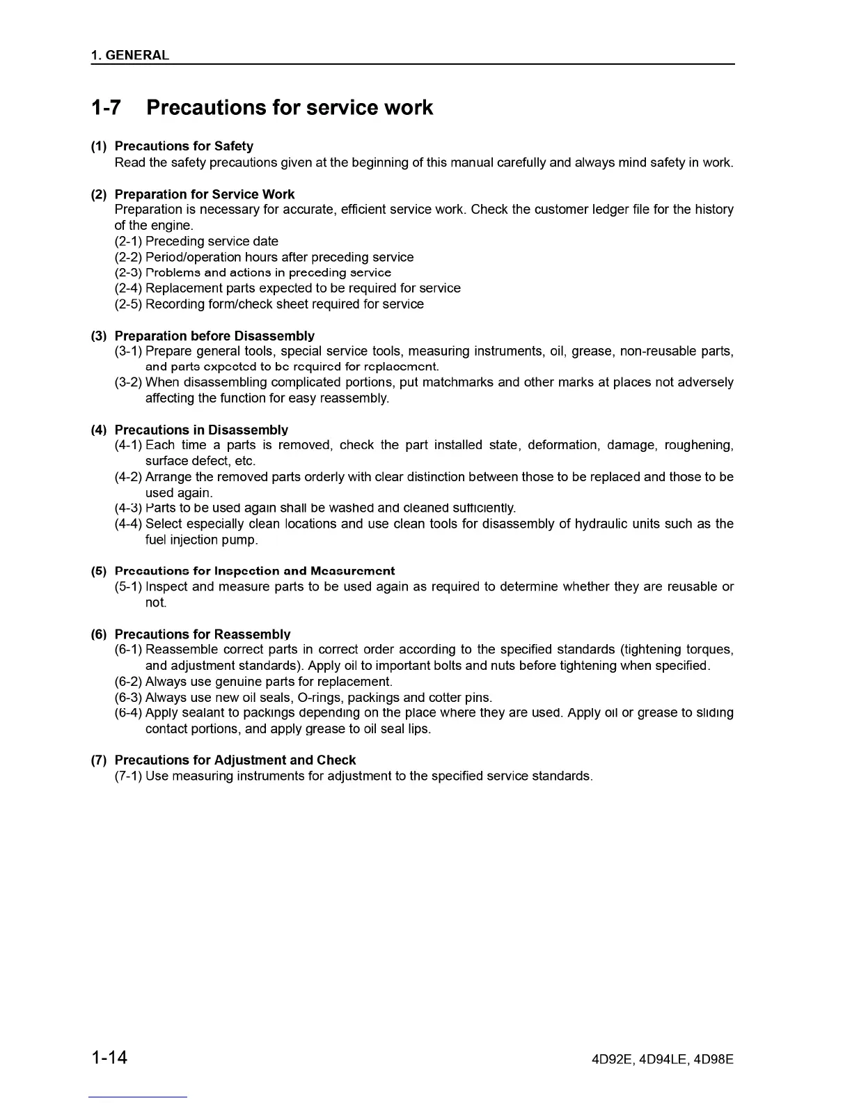 (3-1) Prepare general tools, special service tools, measuring instruments, oil, grease, non-reusable parts,