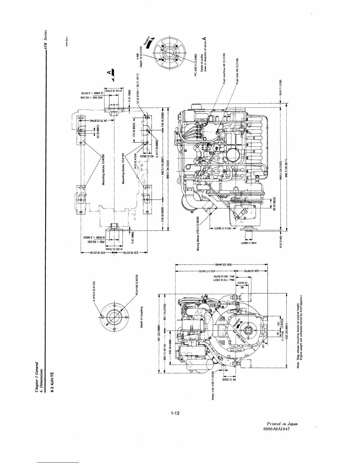 Yanmar 4JH-DTE - Dimensions: 4 JH-TE
