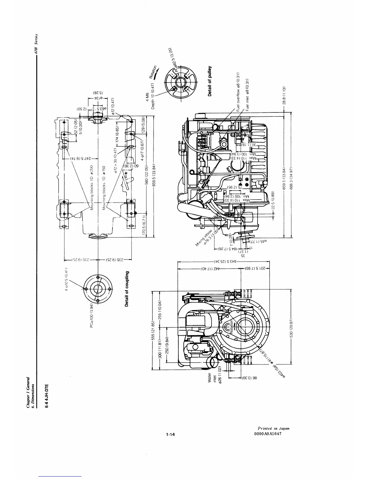 Yanmar 4JH-DTE - Dimensions: 4 JH-DTE