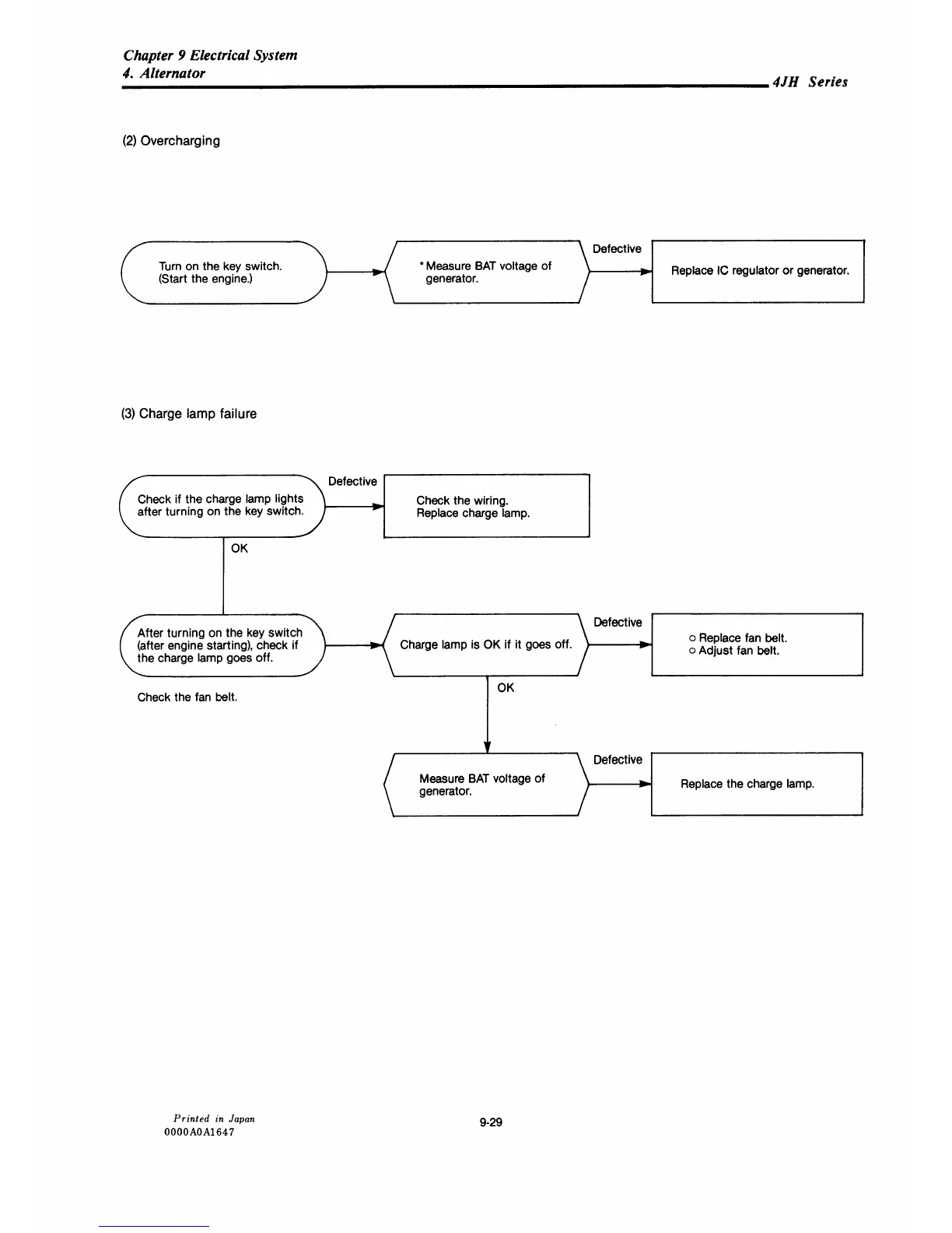 Yanmar 4JH-DTE - Alternator: Overcharging; Alternator: Charge Lamp Failure