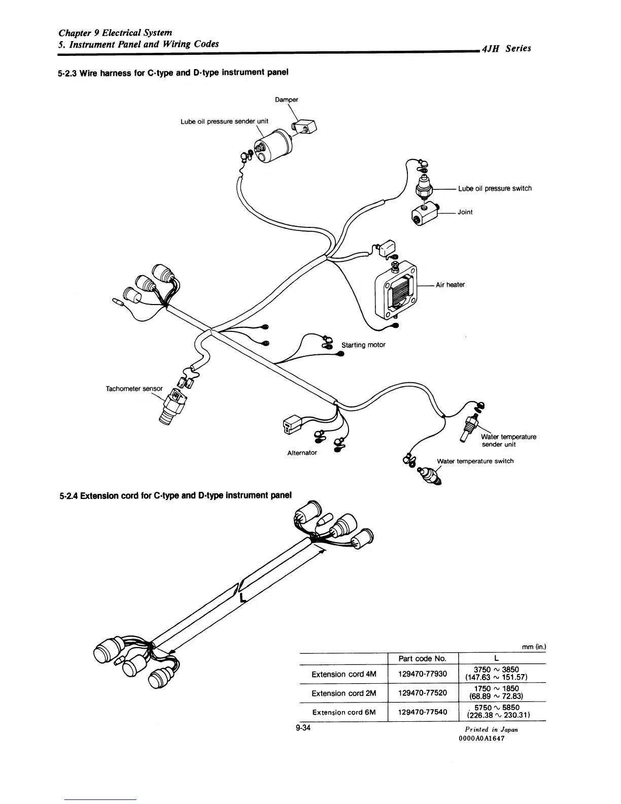 Yanmar 4JH-DTE - Wire Harness for C-Type and D-Type Instrument Panel; Extension Cord for C-Type and D-Type Instrument Panel
