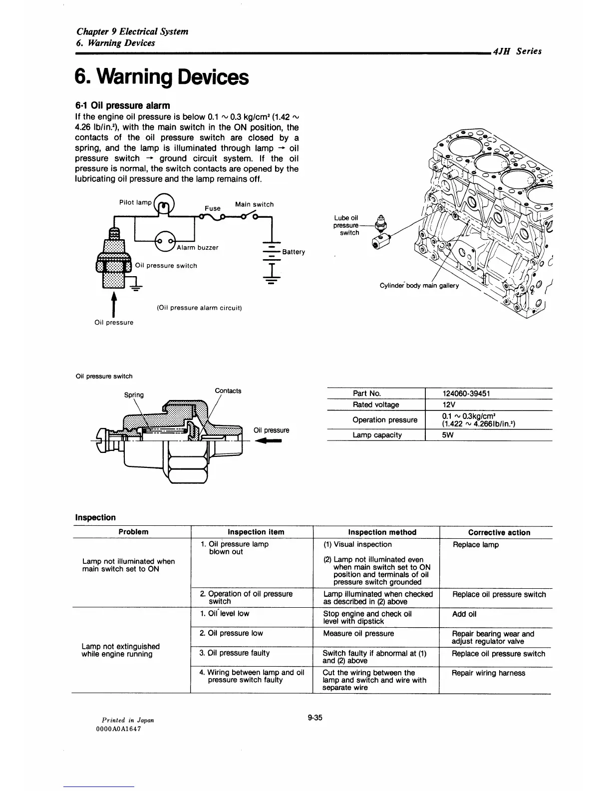Yanmar 4JH-DTE - Warning Devices; Oil Pressure Alarm