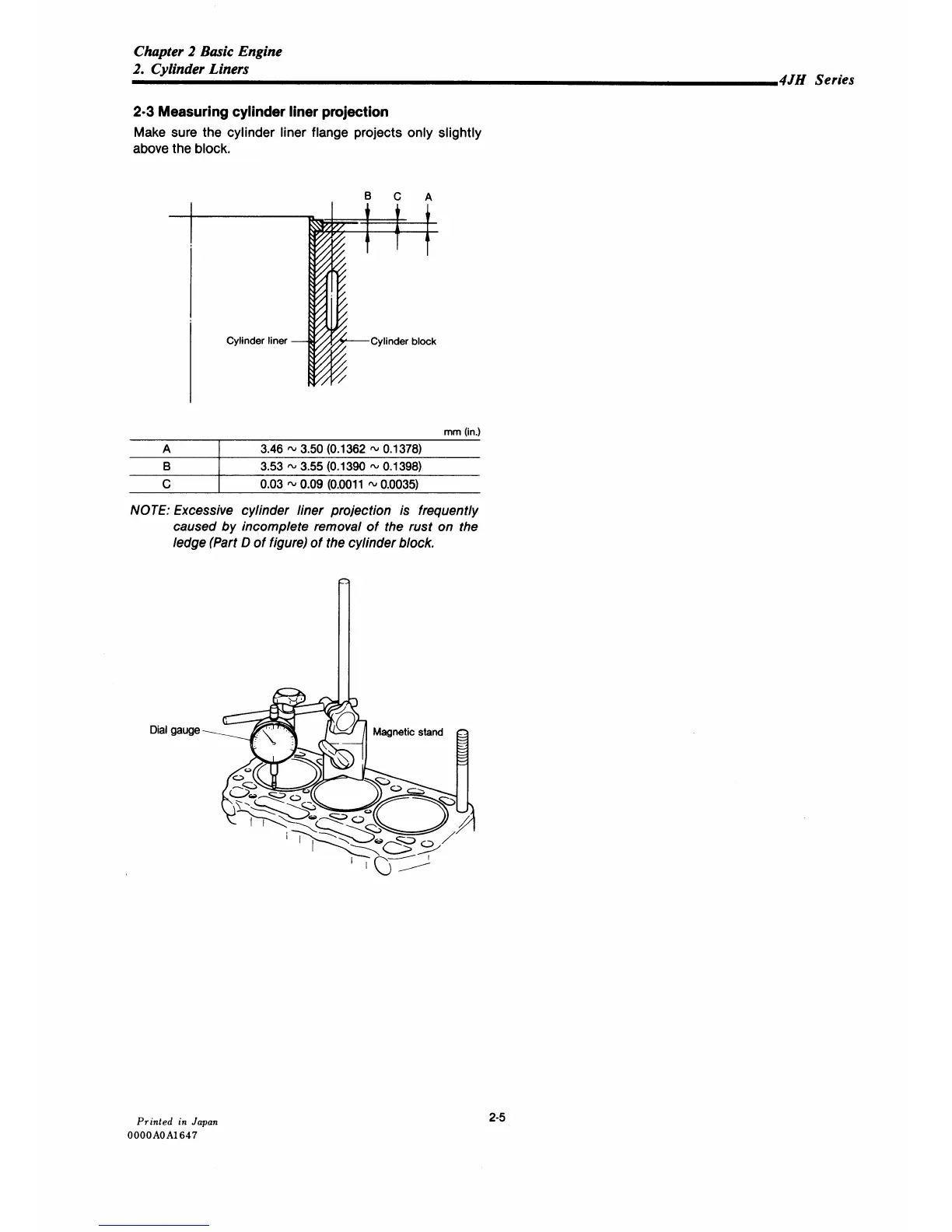 Yanmar 4JH-DTE - Measuring Cylinder Liner Projection