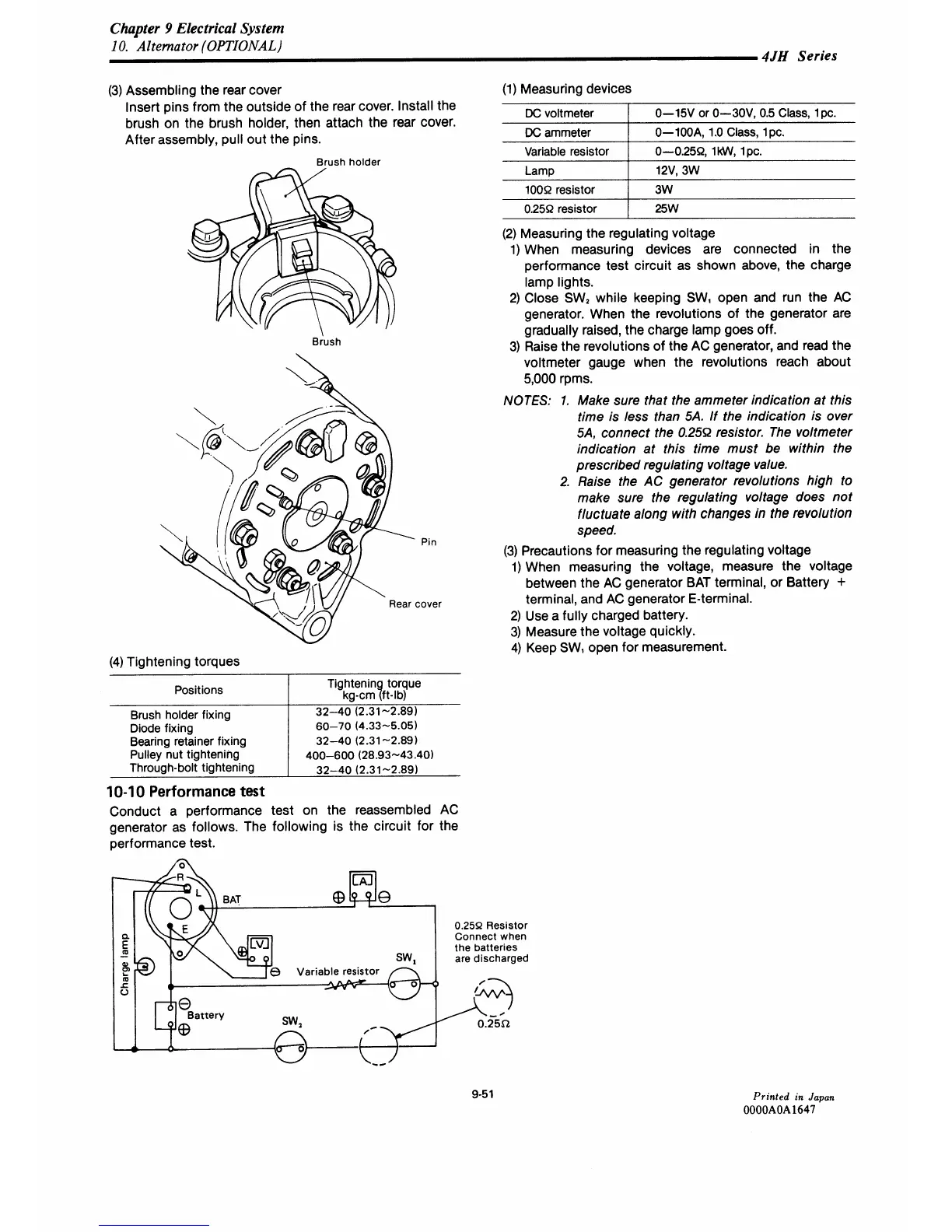 Yanmar 4JH-DTE - Performance Test: Alternator