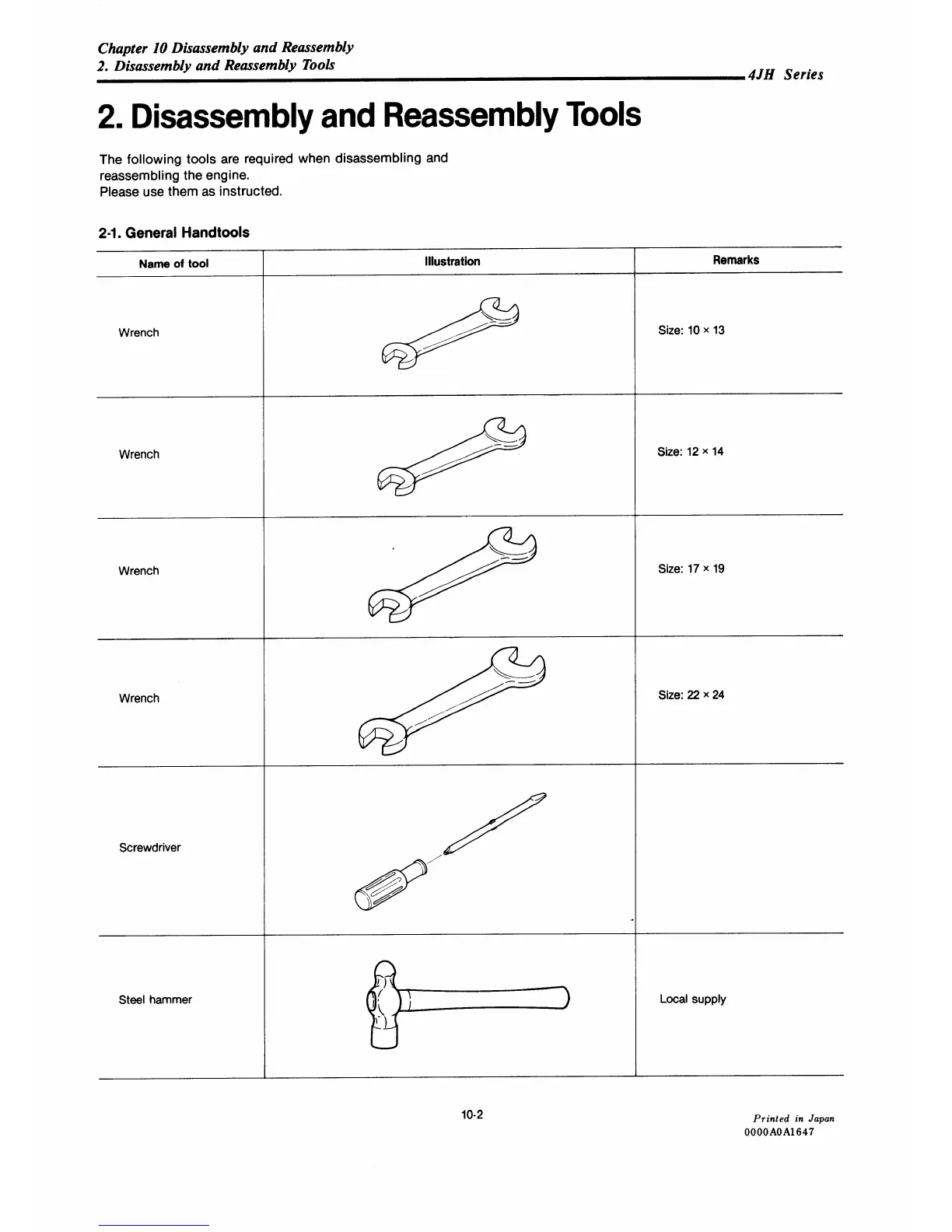 Yanmar 4JH-DTE - Disassembly and Reassembly Tools