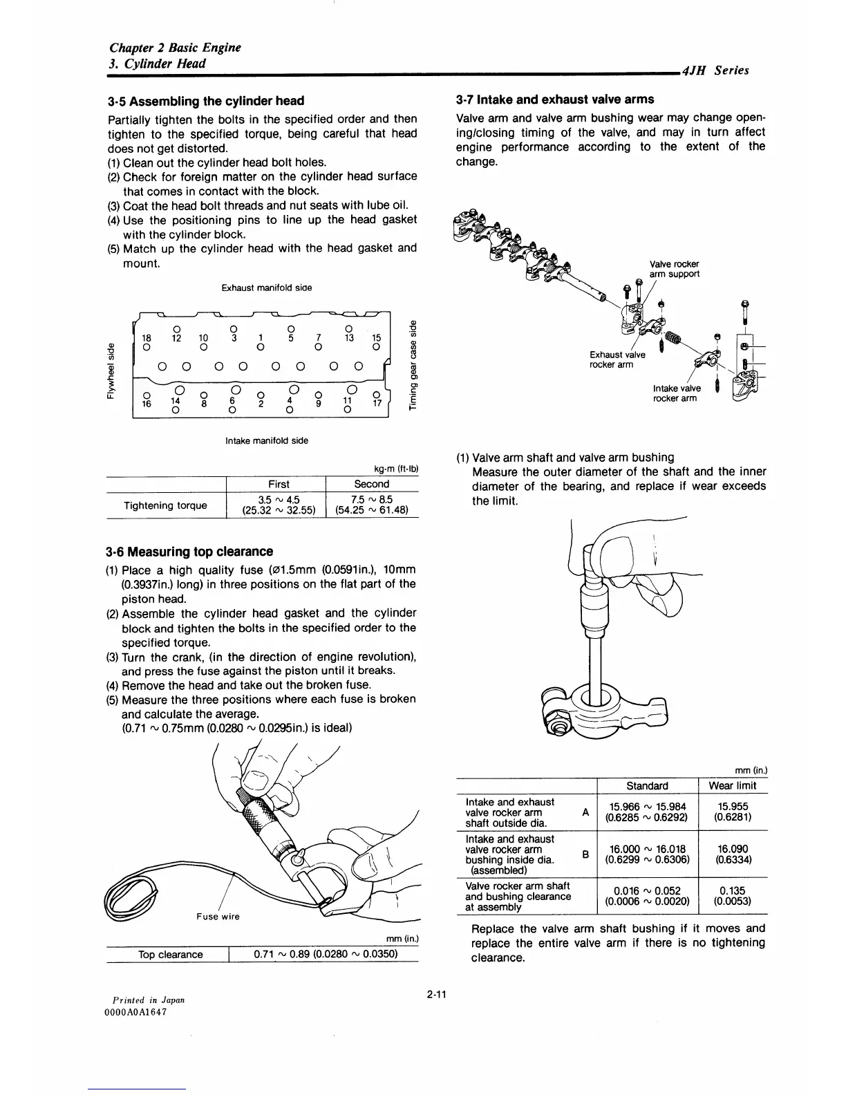 Yanmar 4JH-DTE - Assembling the Cylinder Head; Intake and Exhaust Valve Arms; Measuring Top Clearance