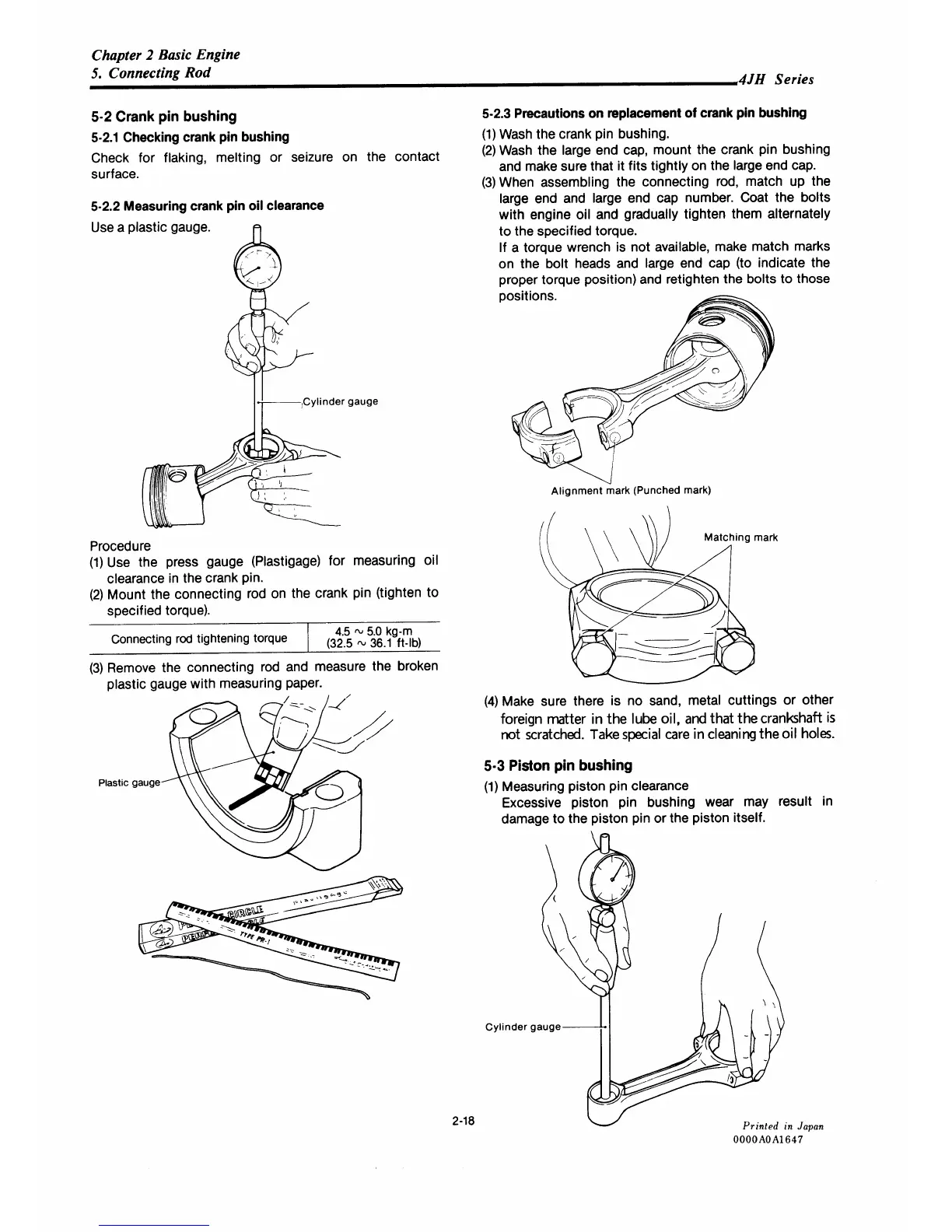 Yanmar 4JH-DTE - Crank Pin Bushing; Piston Pin Bushing; Measuring Crank Pin Oil Clearance; Precautions on Replacement of Crank Pin Bushing
