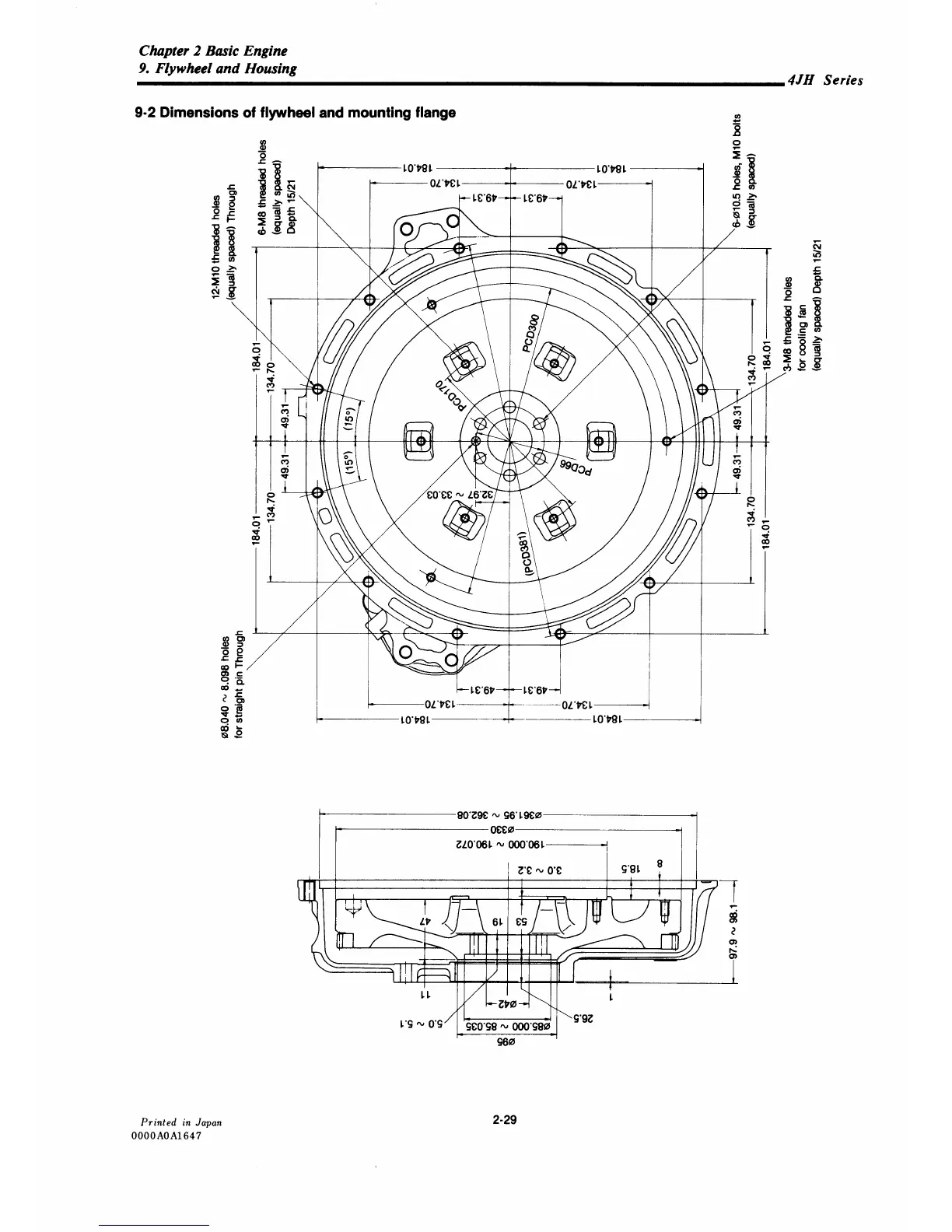 Yanmar 4JH-DTE - Dimensions of Flywheel and Mounting Flange