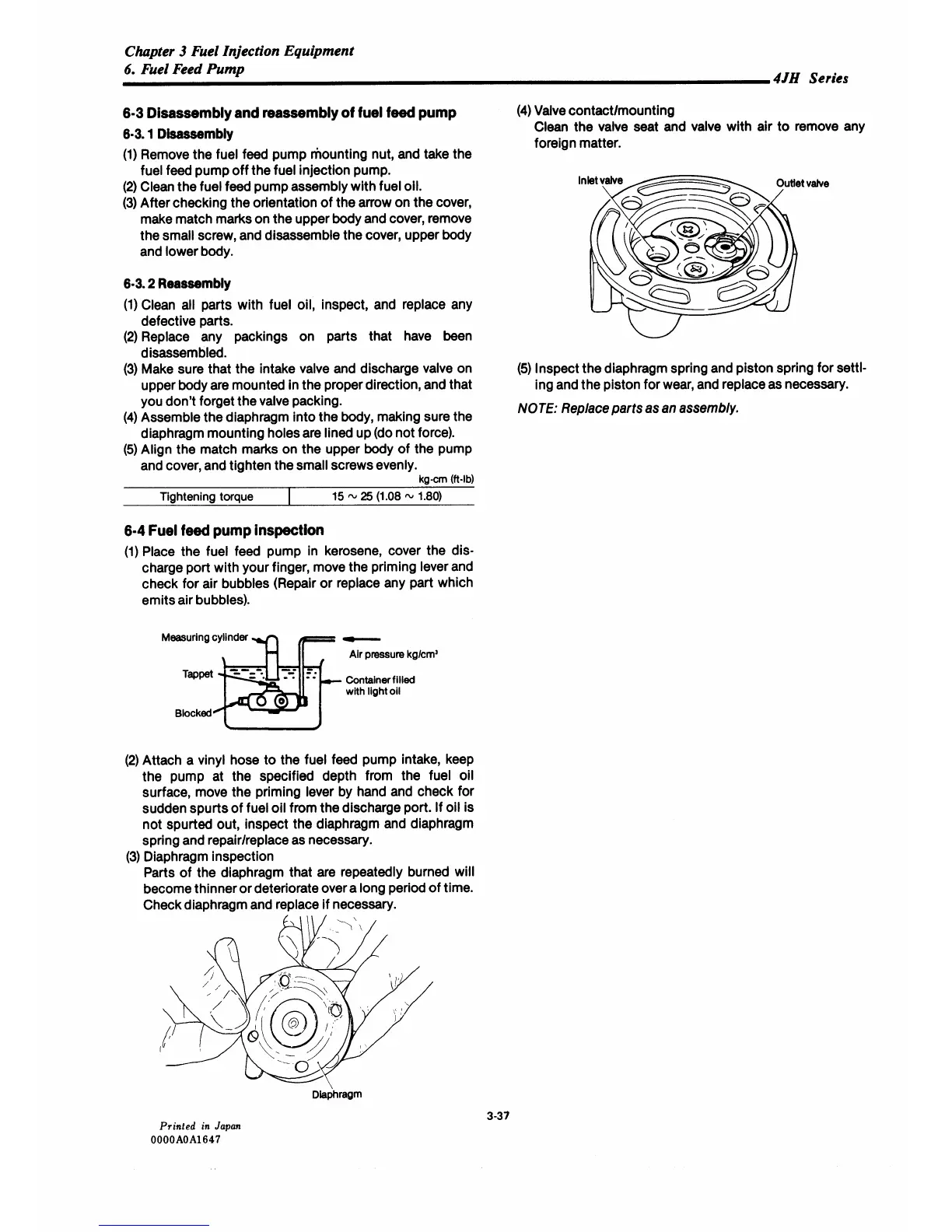 Yanmar 4JH-DTE - Disassembly and Reassembly of Fuel Feed Pump; Fuel Feed Pump Inspection