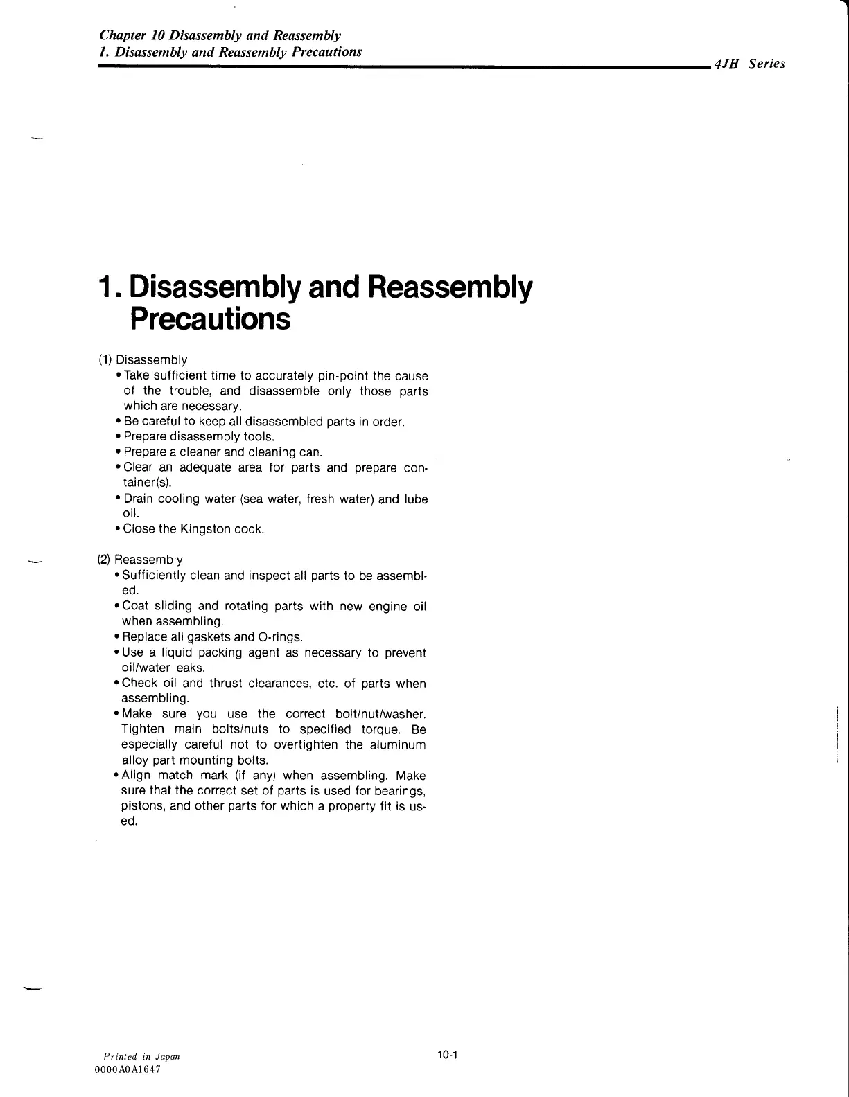 Yanmar 4JH-T(B)E - 1 Disassembly and Reassembly Precautions