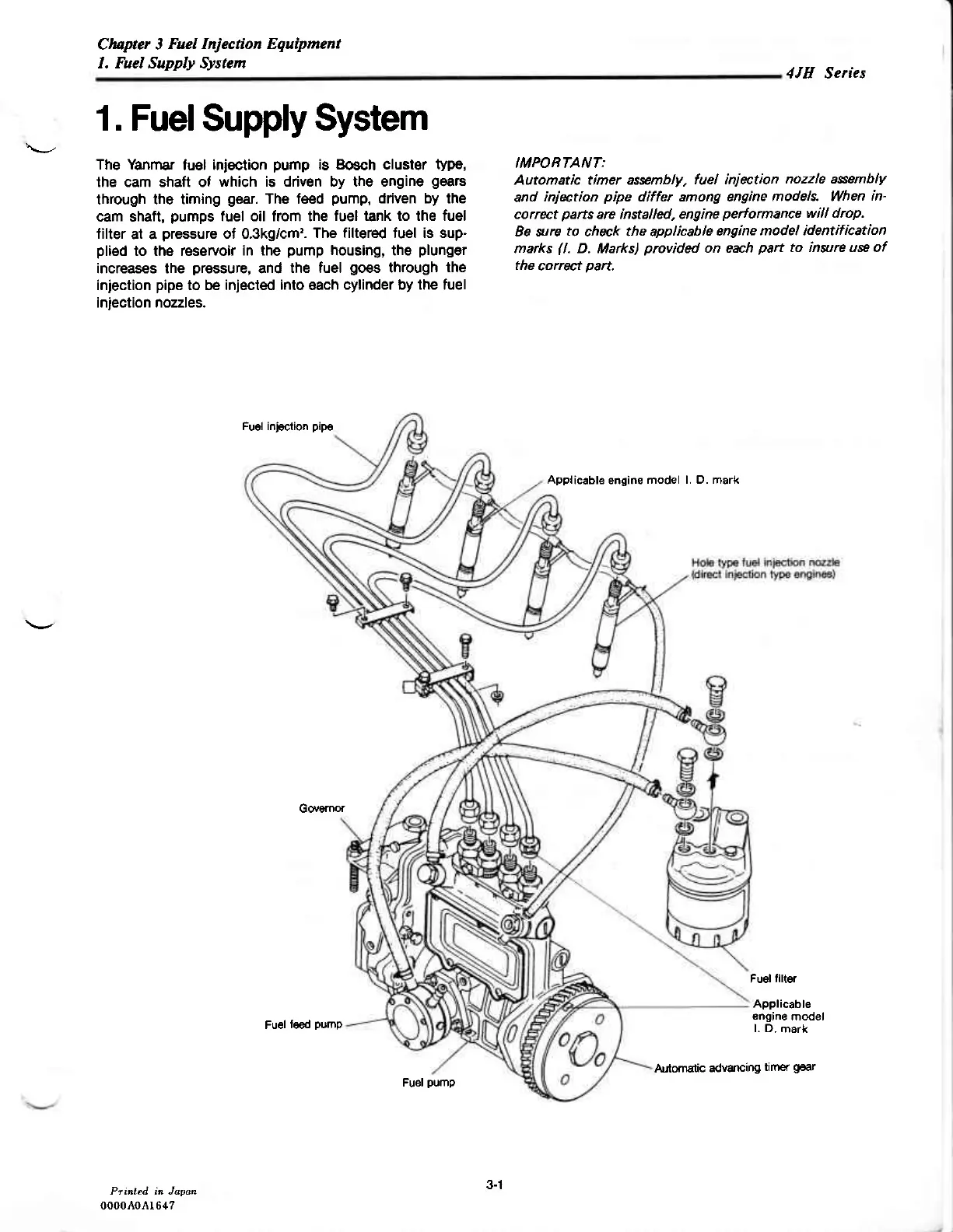 Yanmar 4JH-T(B)E - 1 Fuel Supply System
