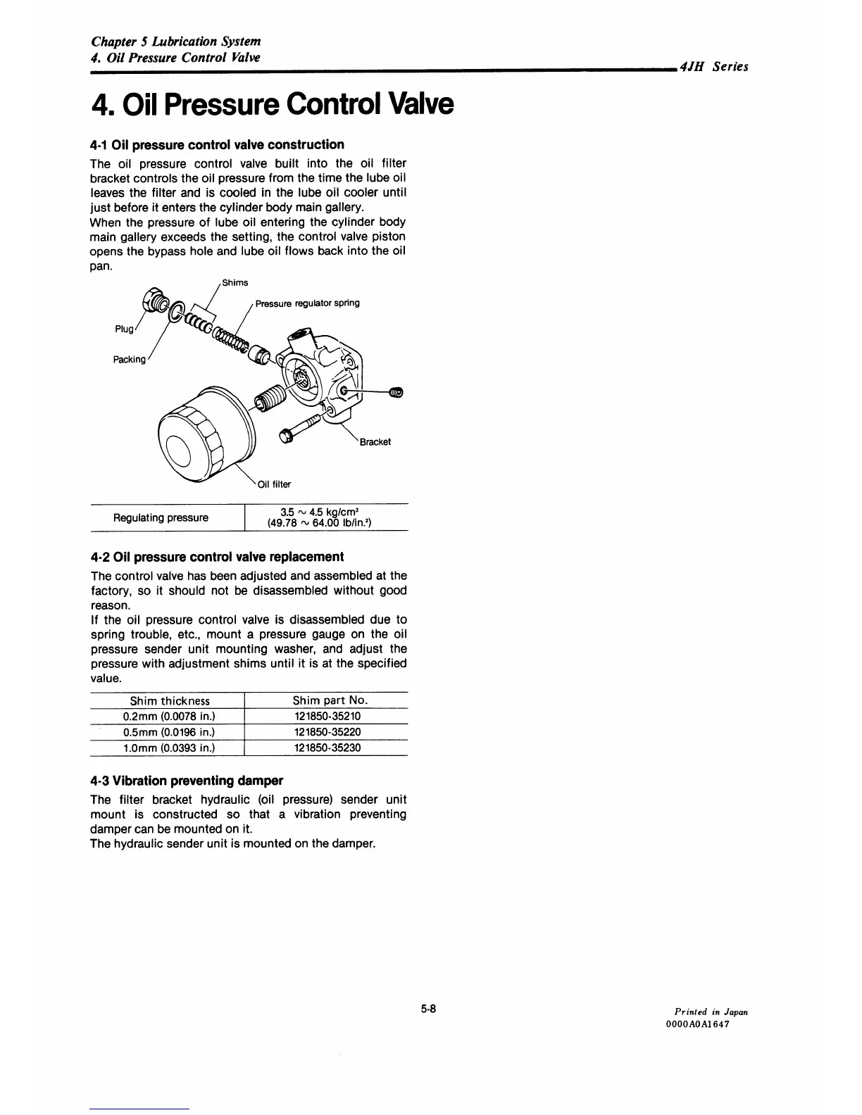 Yanmar 4JH-TE - Oil Pressure Control Valve