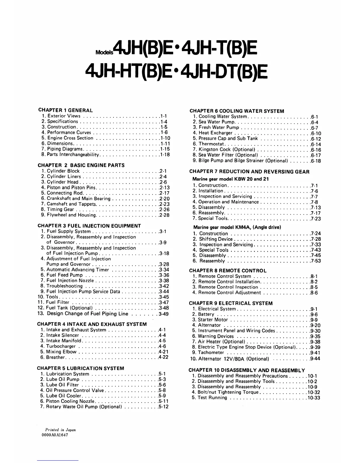 Yanmar 4JH-TE - Contents