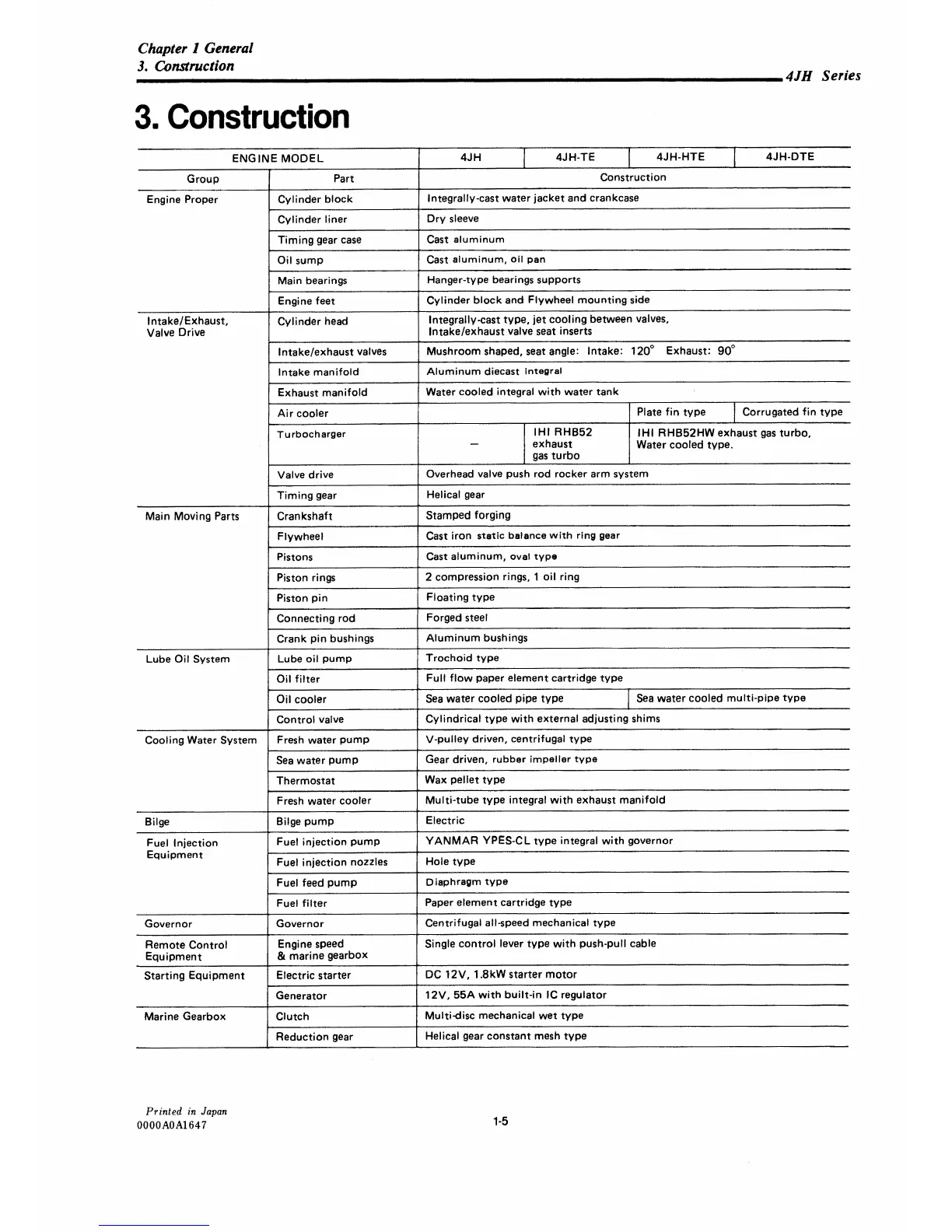 Yanmar 4JH-TE - Engine Construction and Components