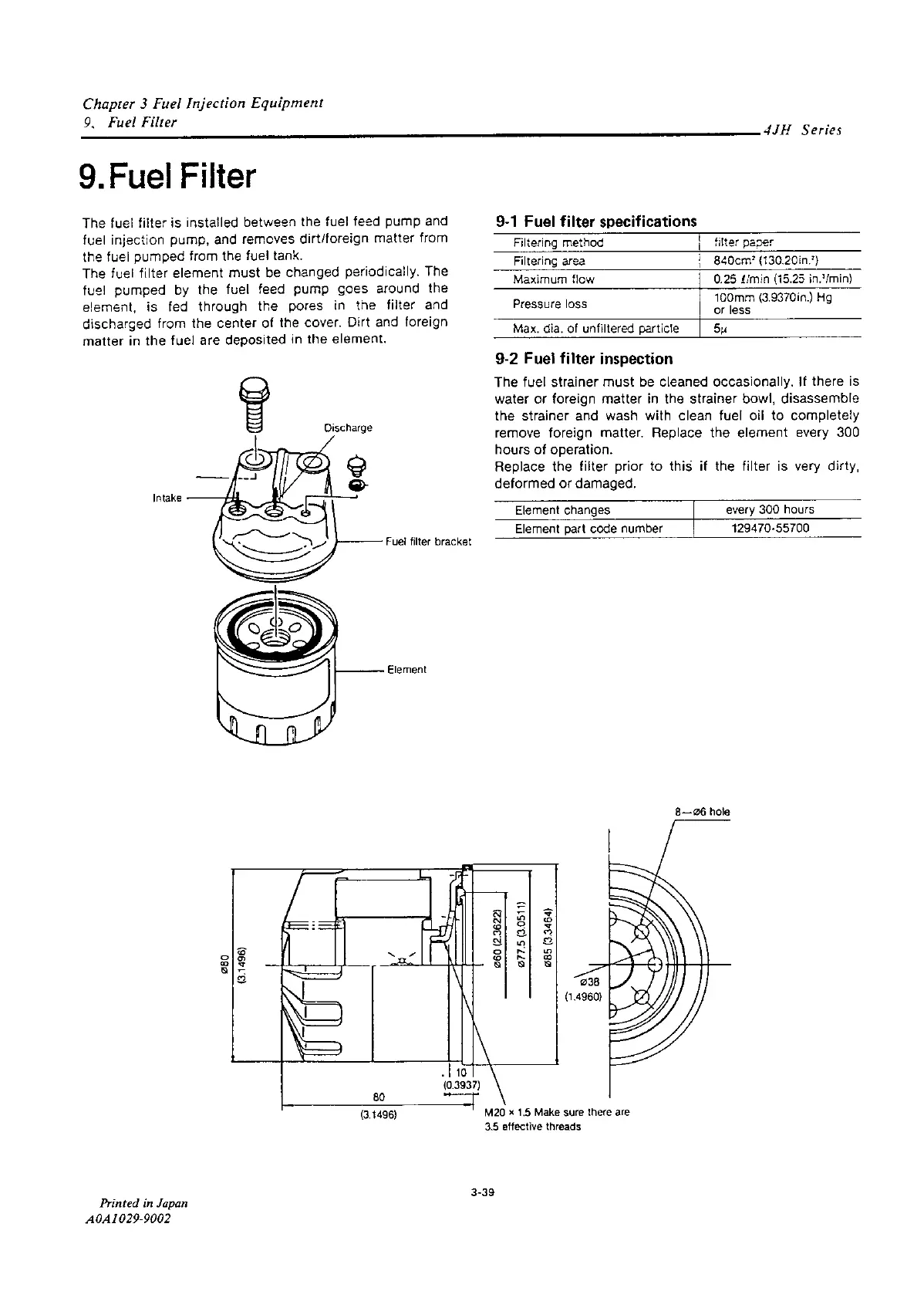 Yanmar 4JH2-DTE - Fuel Filter Specifications