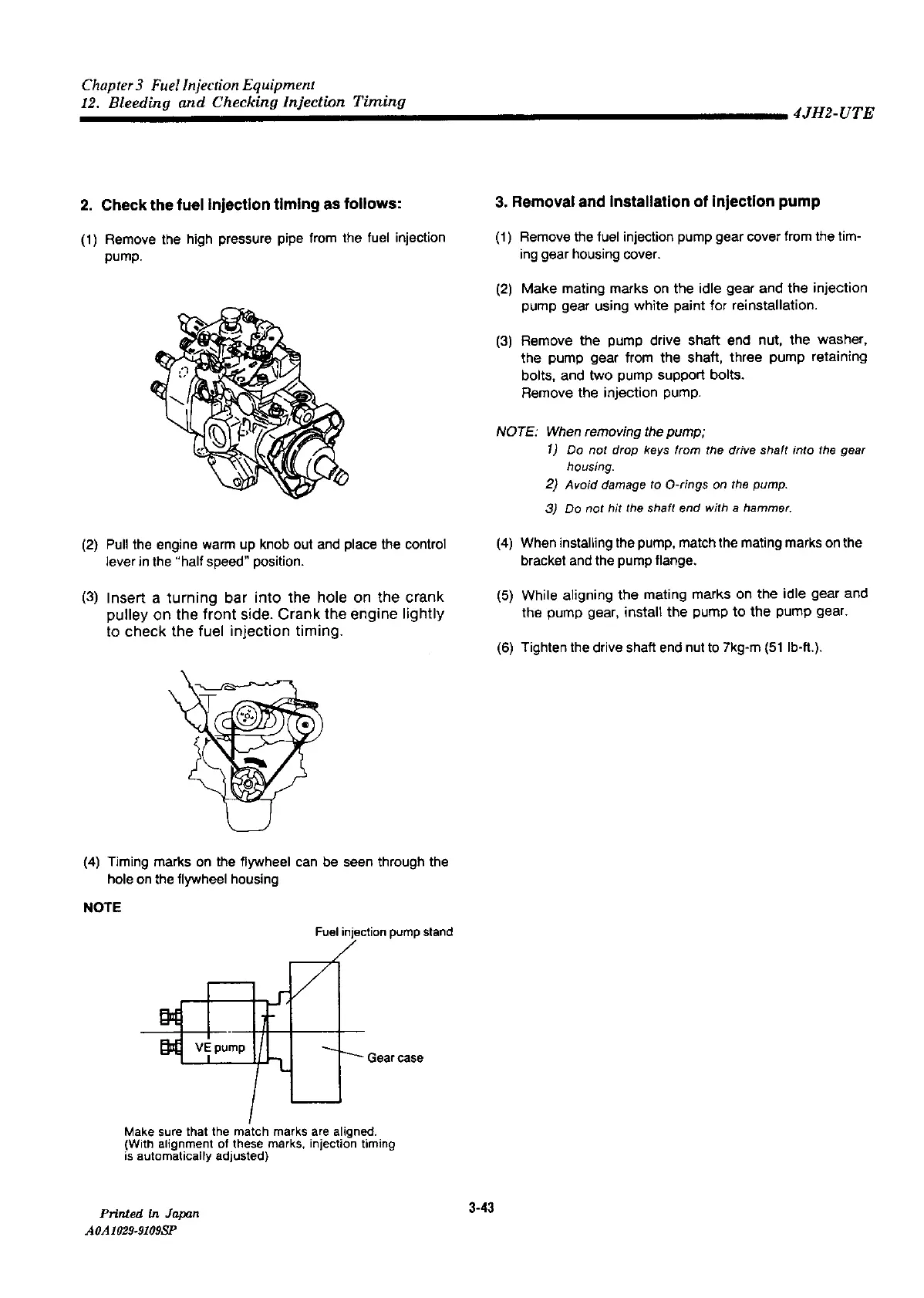 Yanmar 4JH2-DTE - Check the Fuel Injection Timing; Removal and Installation of Injection Pump