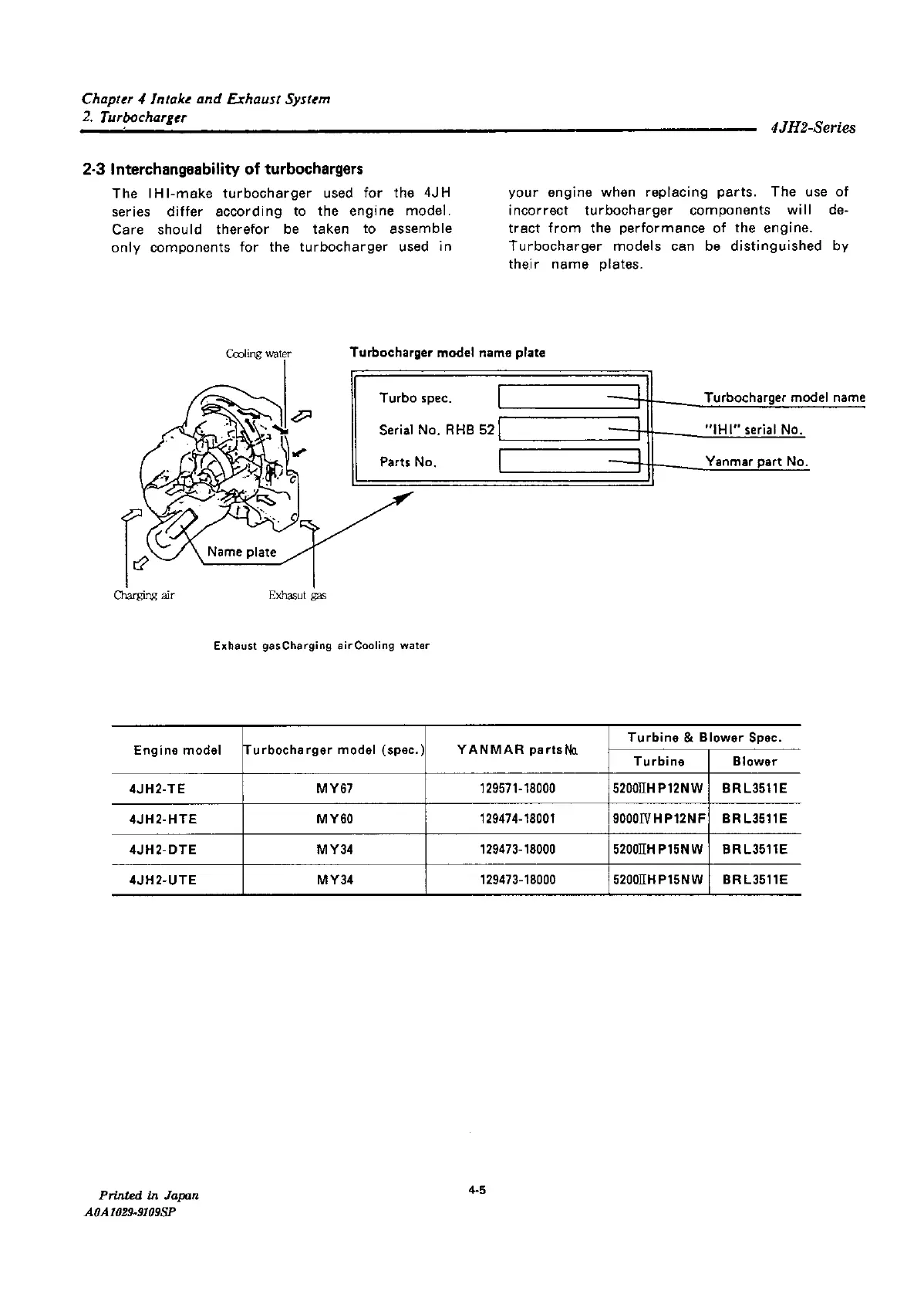 Yanmar 4JH2-DTE - Interchangeability of Turbochargers; Turbocharger Model Name Plate
