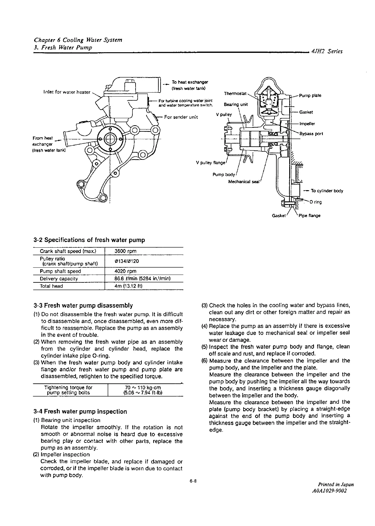 Yanmar 4JH2-DTE - Specification of Fresh Water Pump; Fresh Water Pump Disassembly;Inspection