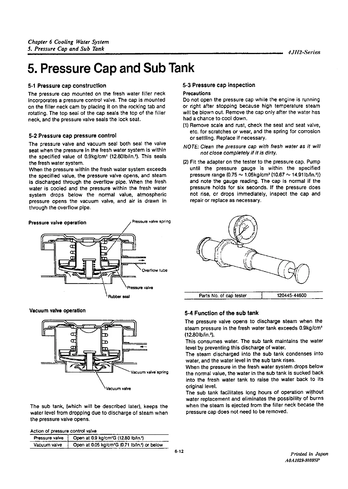 Yanmar 4JH2-DTE - Pressure Cap Construction;Inspection; Pressure Cap Pressure Control; Function of the Sub Tank