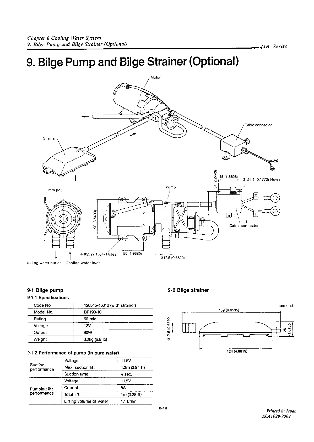 Yanmar 4JH2-DTE - Bilge Pump Specifications; Performance of Pump (in Pure Water); Bilge Strainer