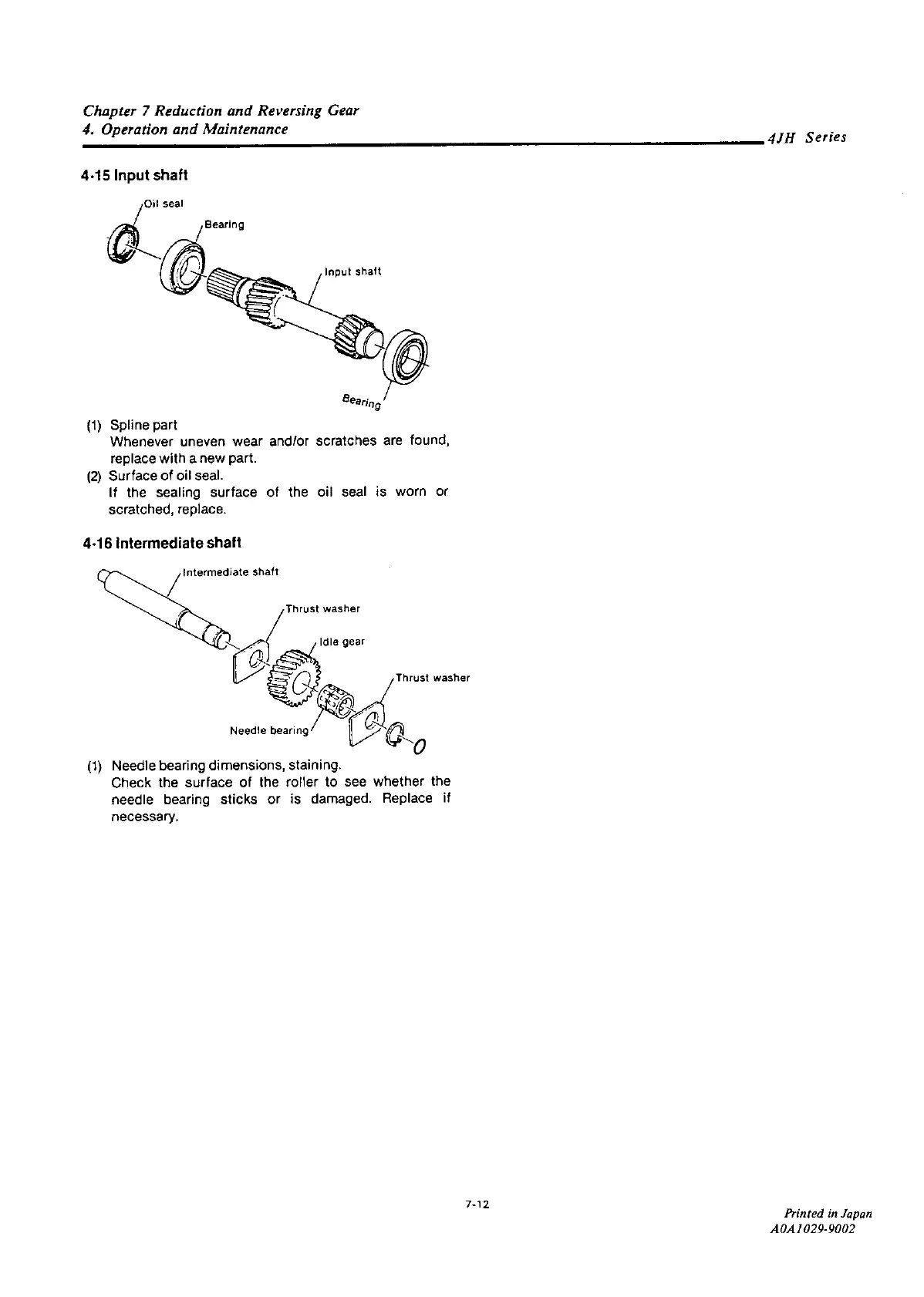 Yanmar 4JH2-DTE - Input;Intermediate Shaft Inspection and Servicing