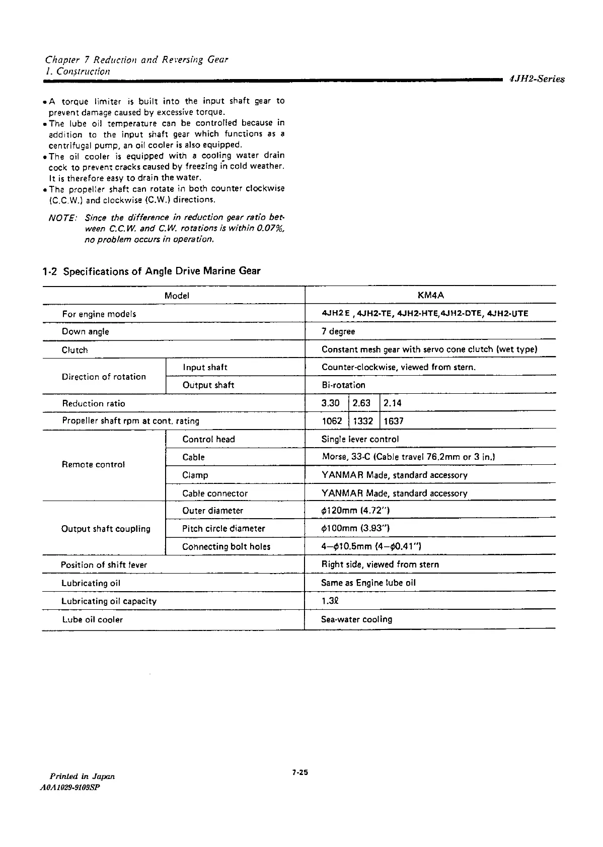 Yanmar 4JH2-DTE - Specifications of Angle Drive Marine Gear