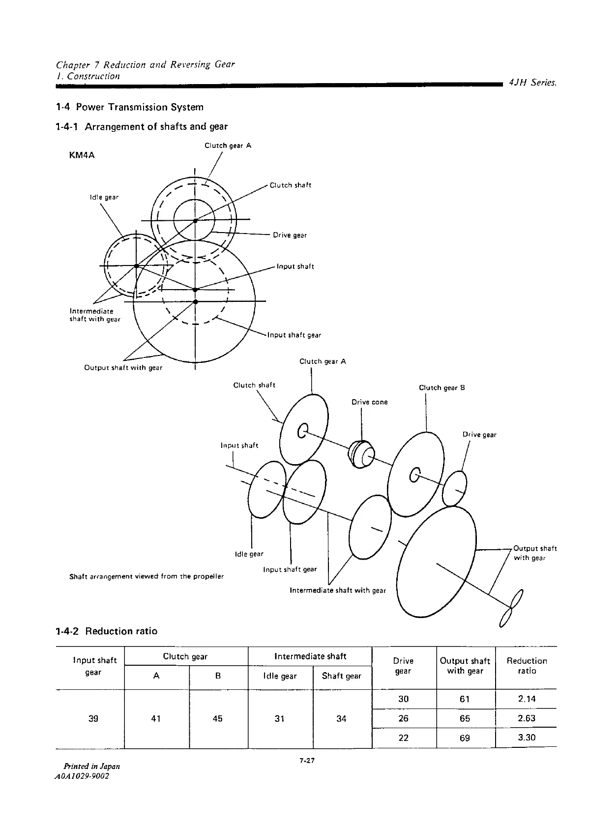 Yanmar 4JH2-DTE - Arrangement of Shafts and Gear; Reduction Ratio