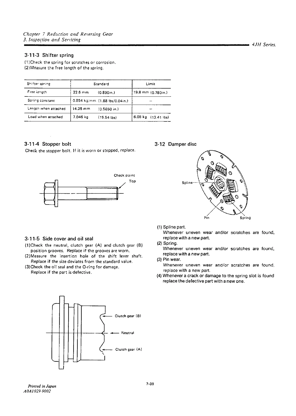 Yanmar 4JH2-DTE - Damper Disc; Shifter Spring; Stopper Bolt; Side Cover and Oil Seal