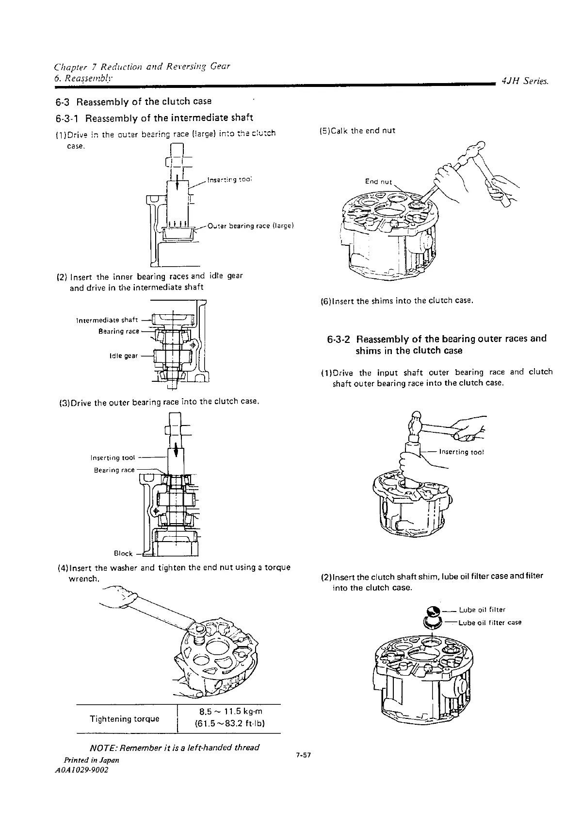 Yanmar 4JH2-DTE - Reassembly of the Intermediate Shaft; Reassembly of the Bearing Outer Races and Shims in the Clutch Case
