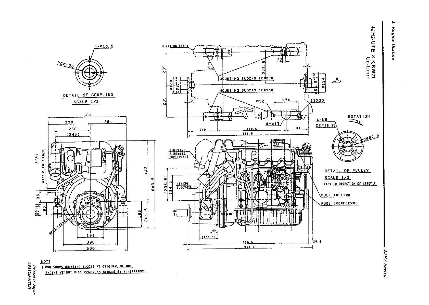 Yanmar 4JH2-DTE - 4 JH2 E-UTE X KBW21 Dimensions