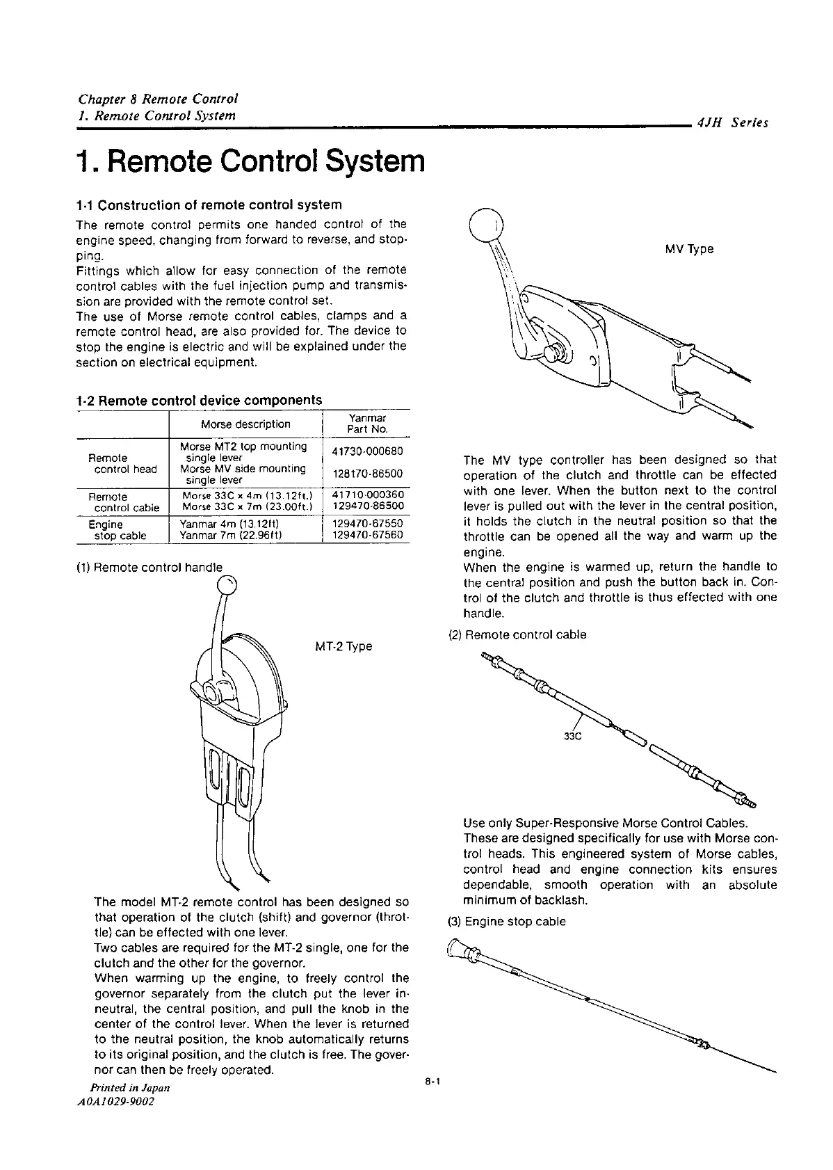Yanmar 4JH2-DTE - Construction of Remote Control System; Remote Control Device Components