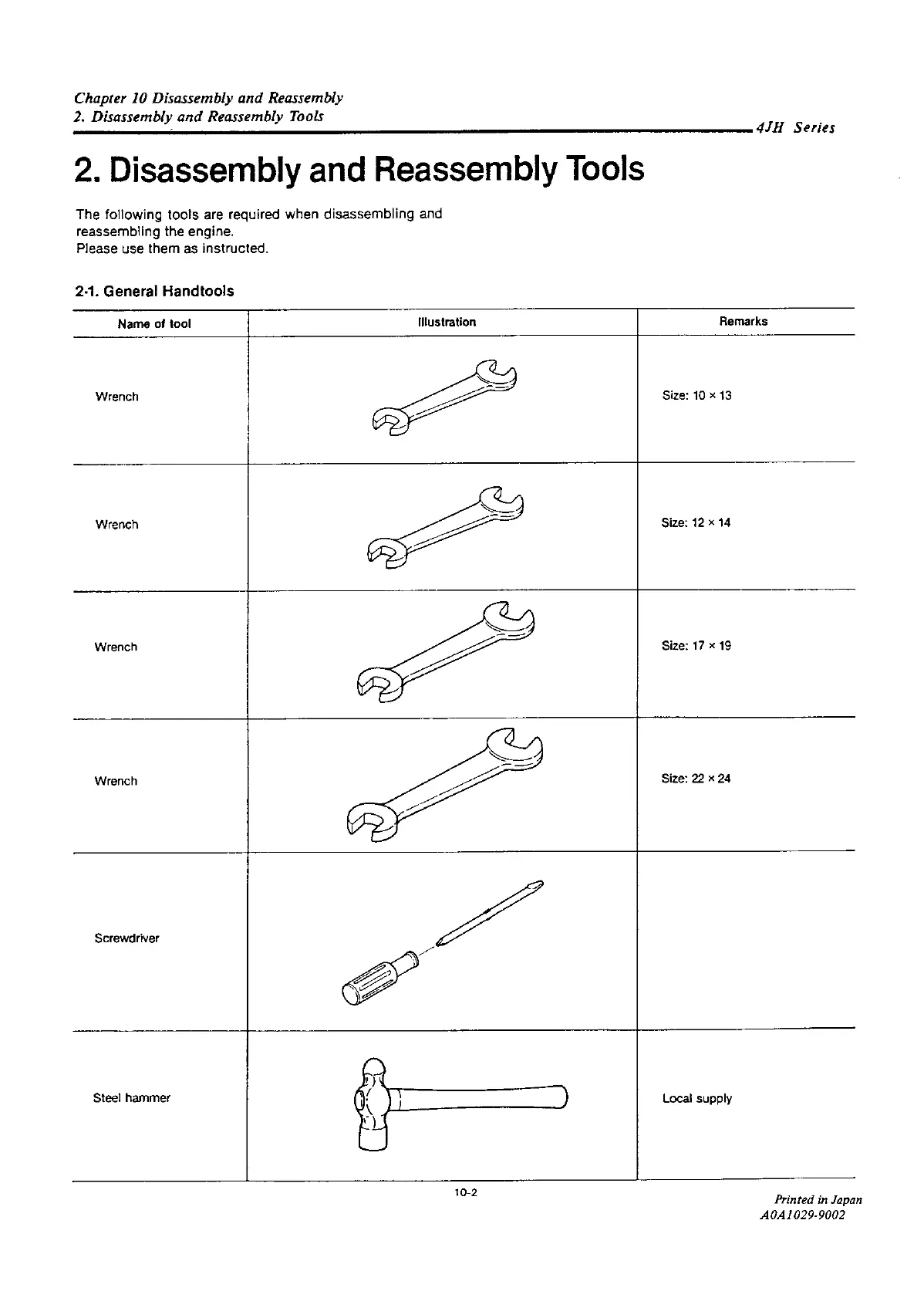 Yanmar 4JH2-DTE - Disassembly and Reassembly Tools; General Handtools